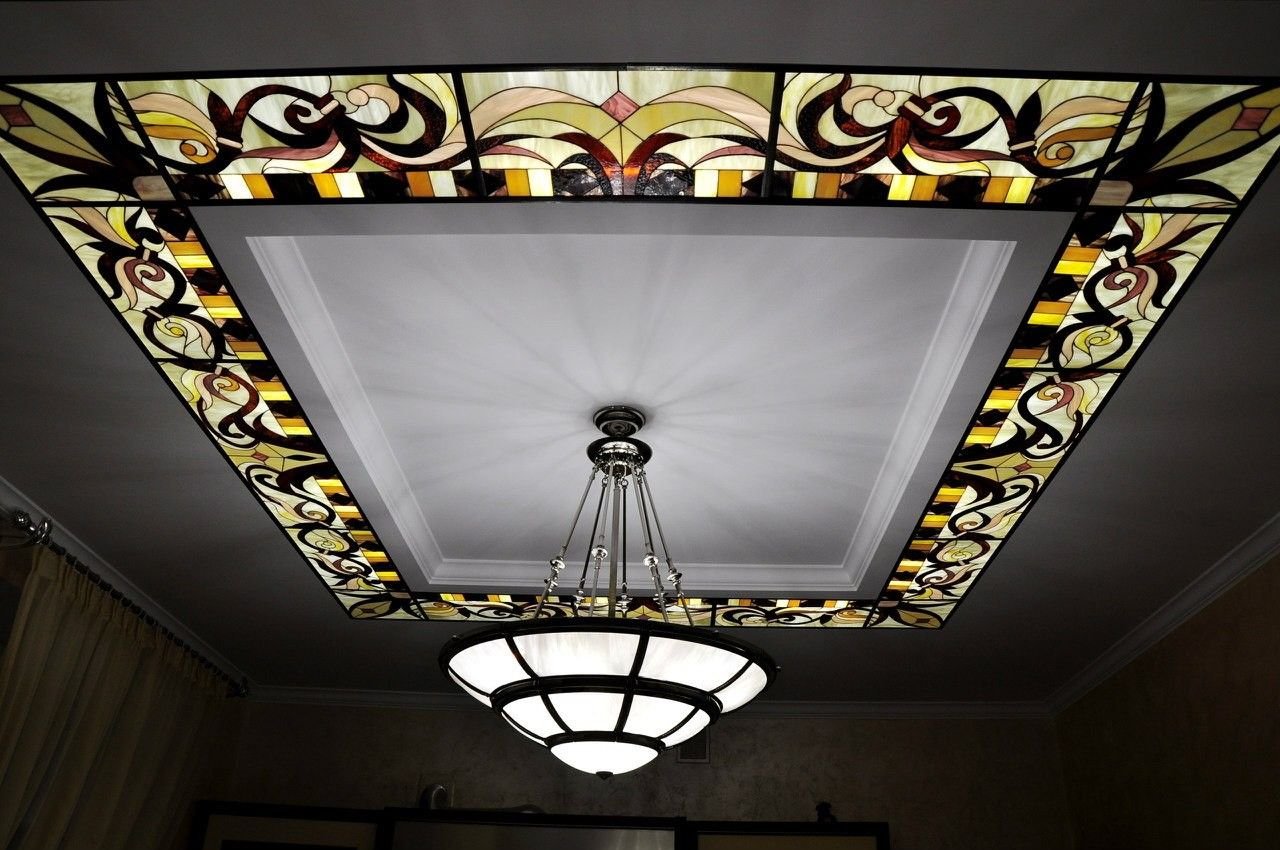 Витражный потолок с подсветкой и люстрой