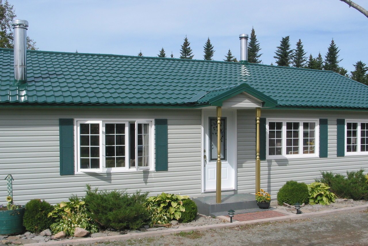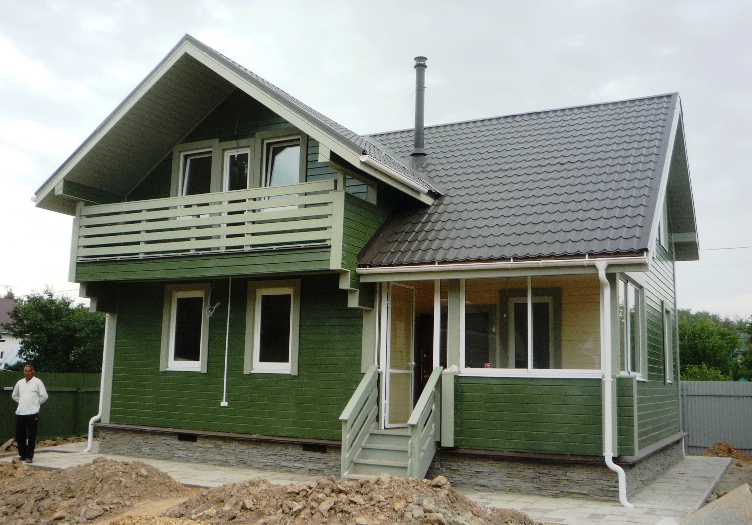 Дачный дом с зеленой крышей