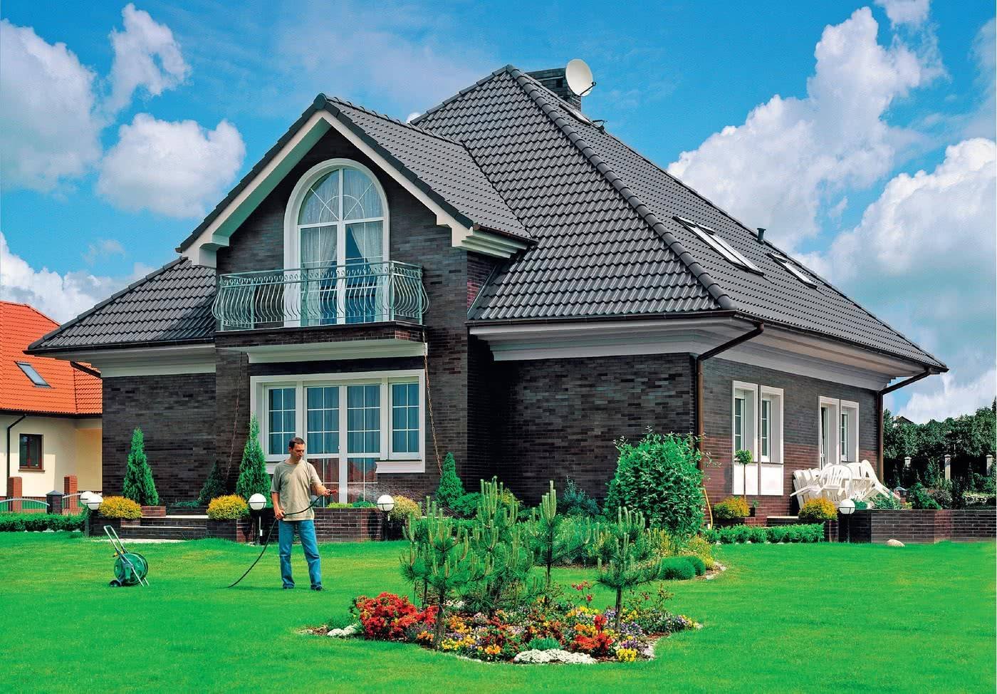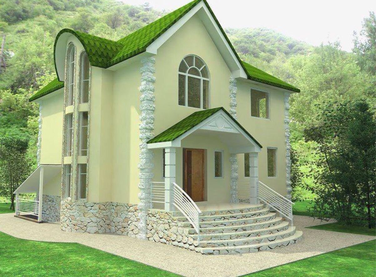 Красивый дом с зеленой крышей