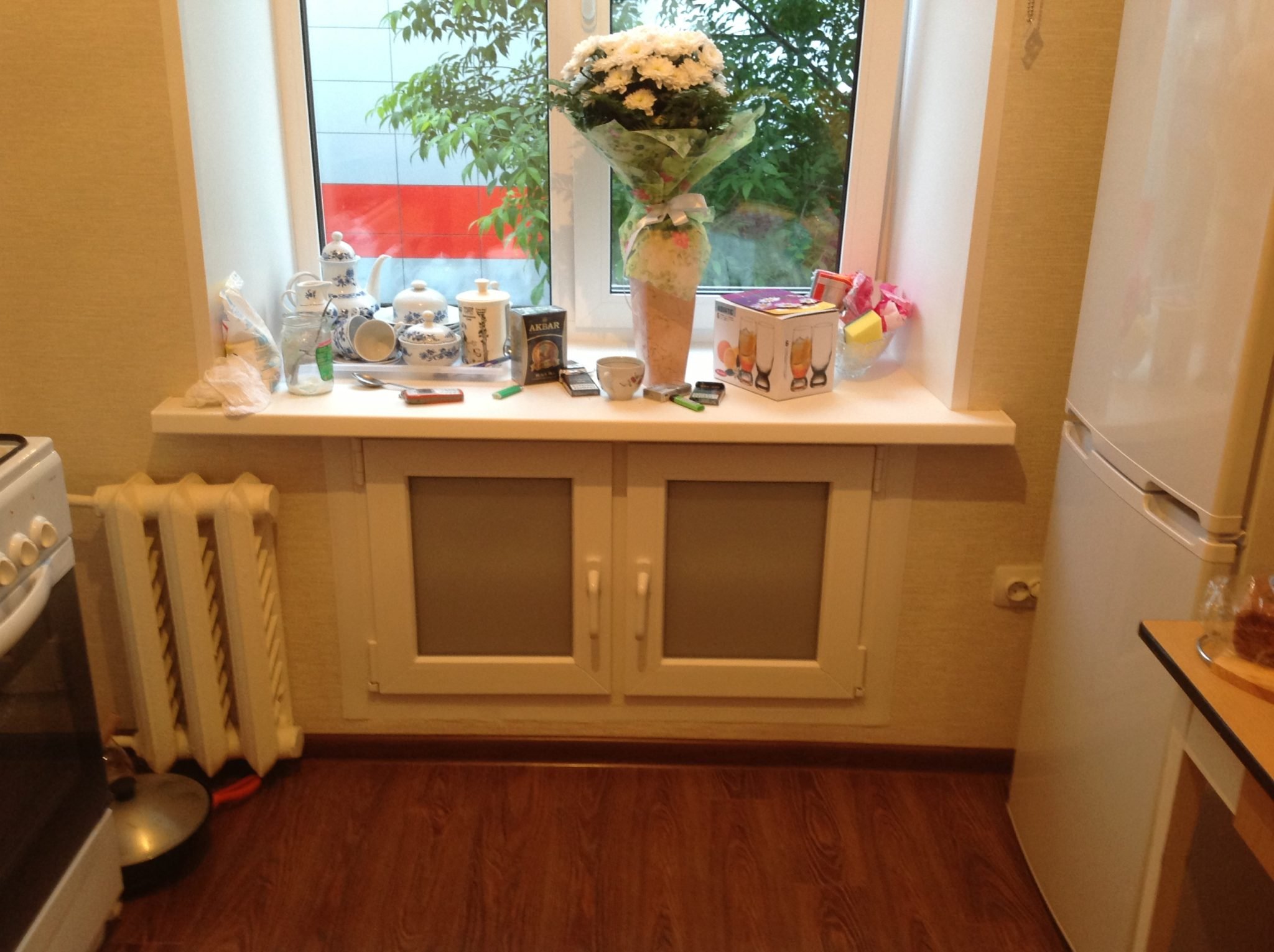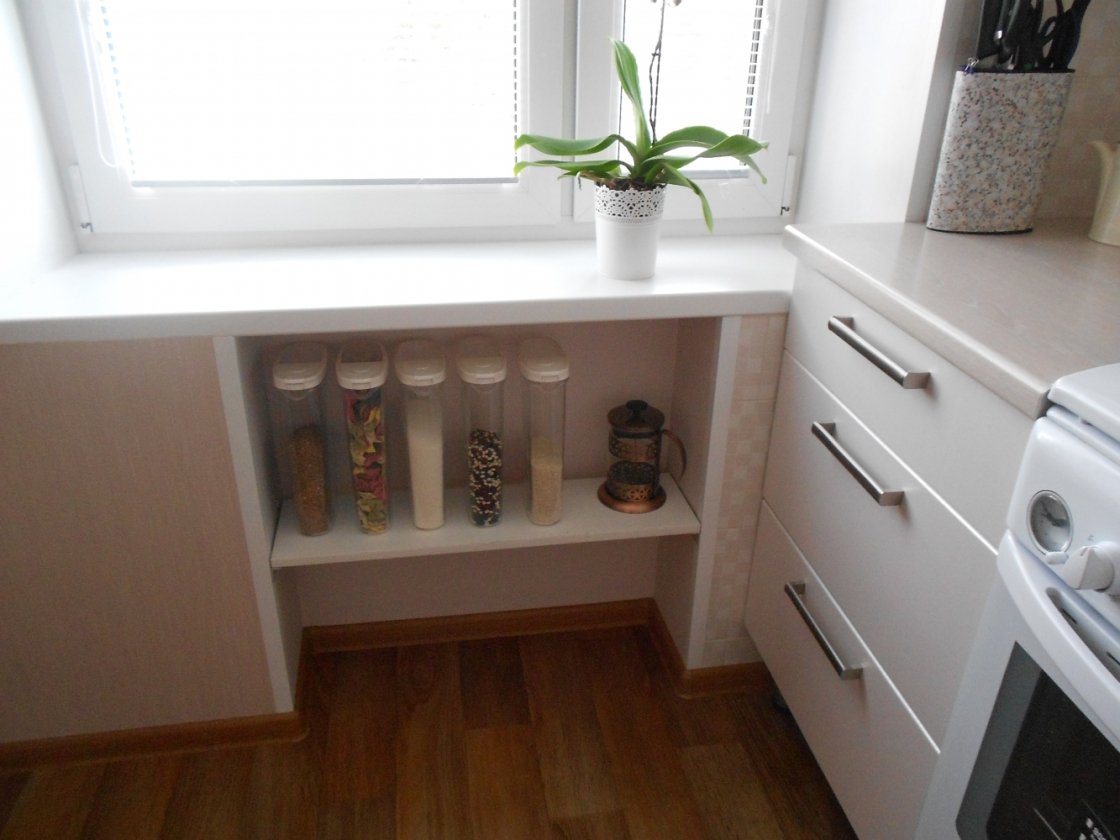 Ниша под подоконником на кухне в хрущевке