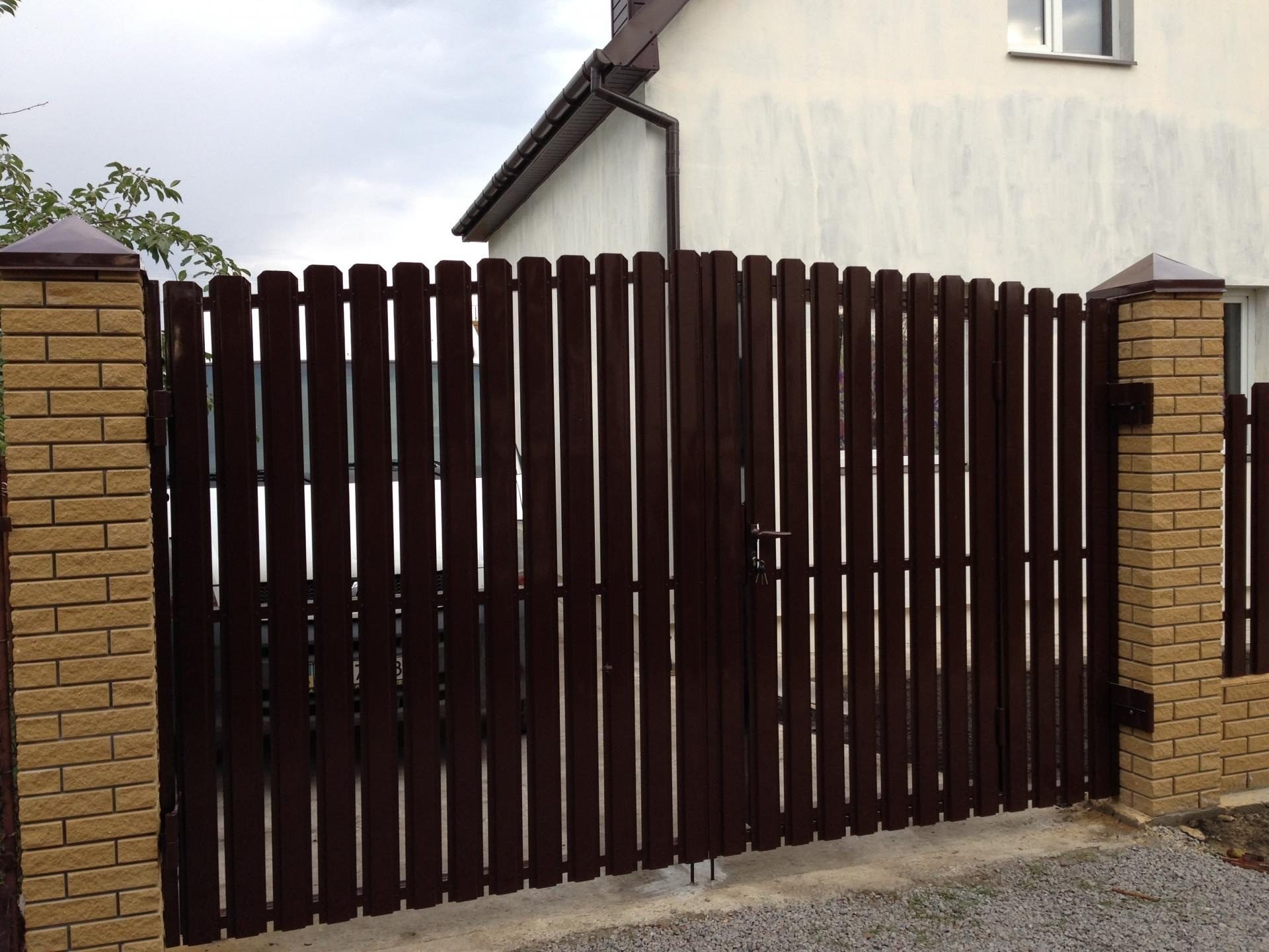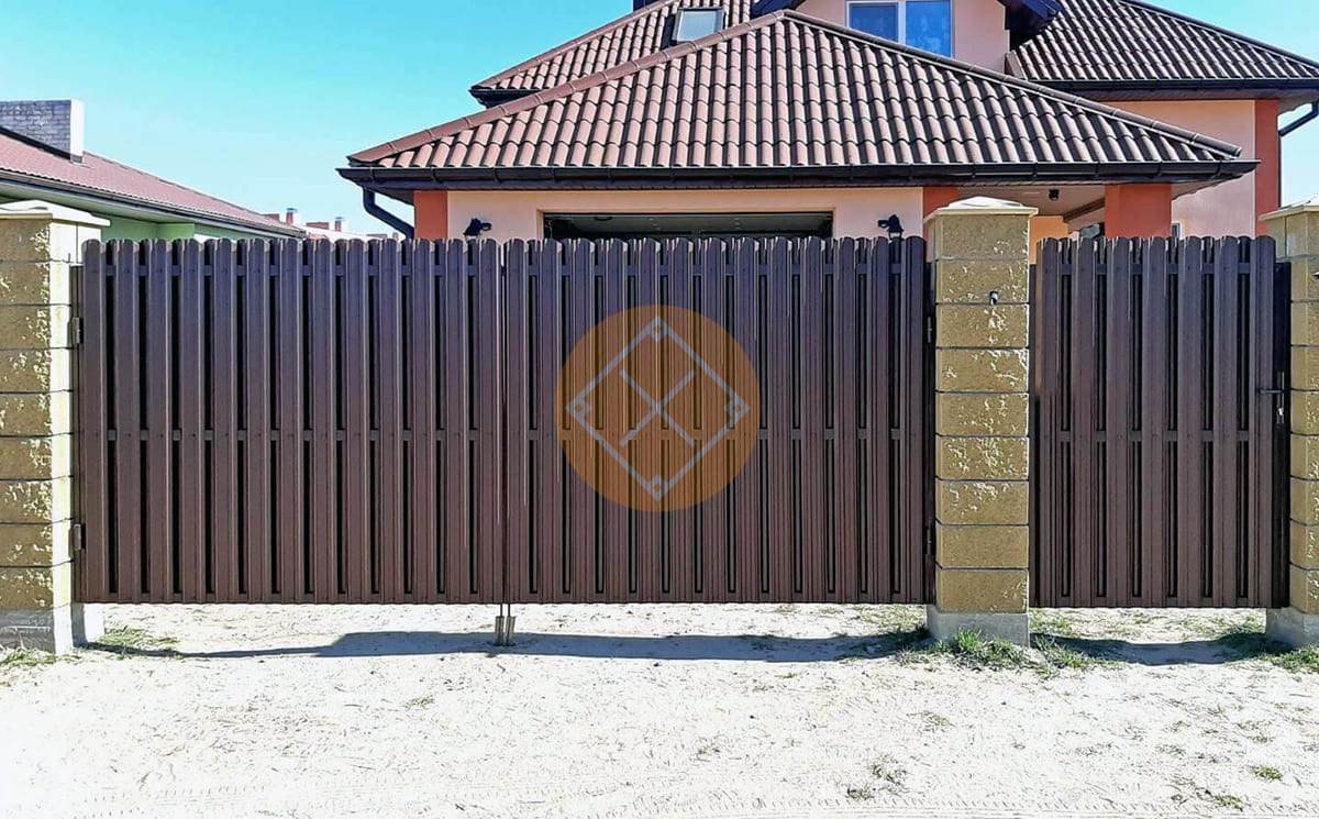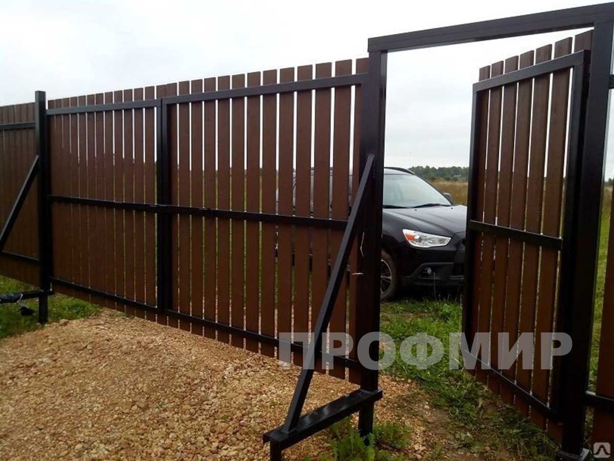 Ворота из евроштакетника коричневый