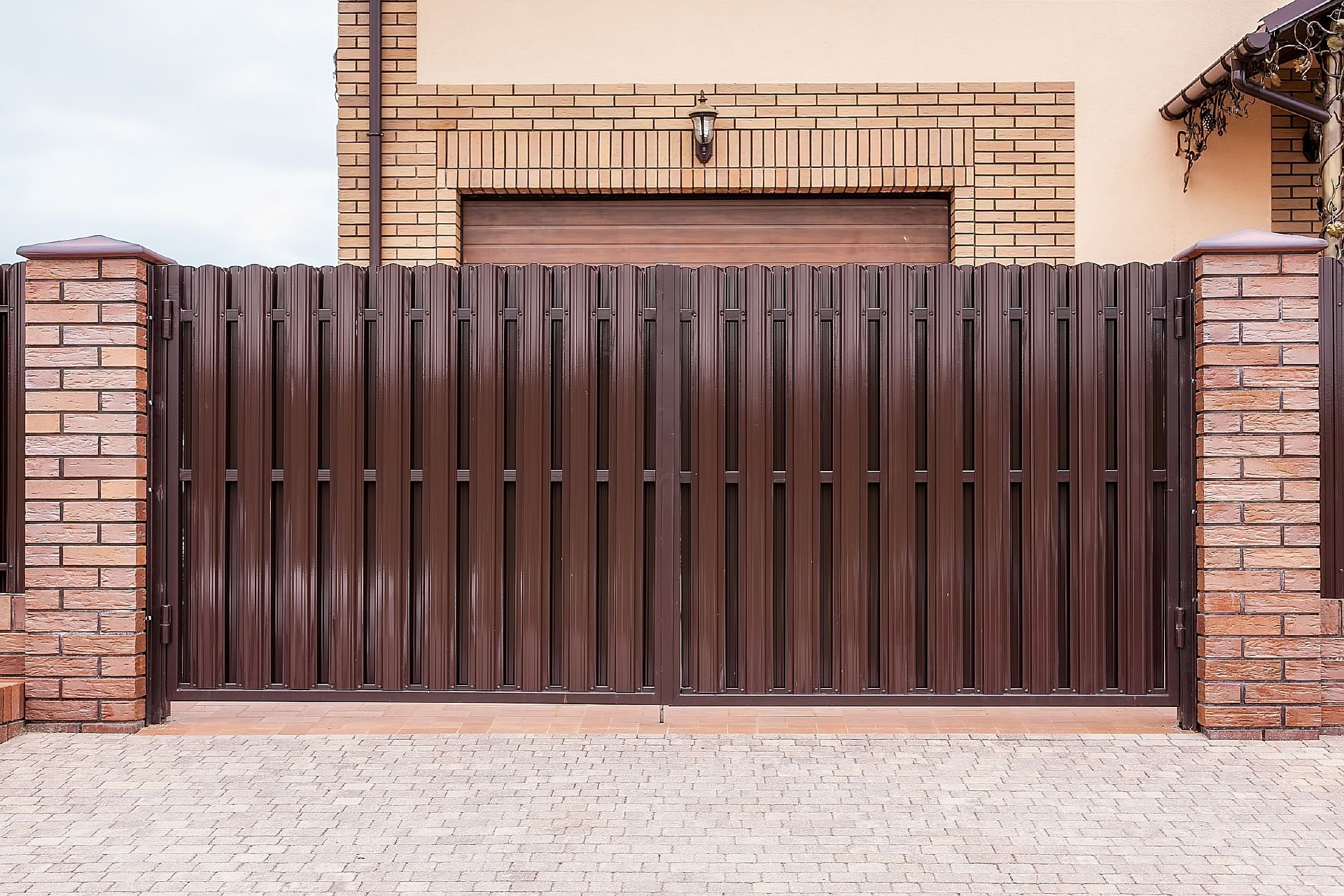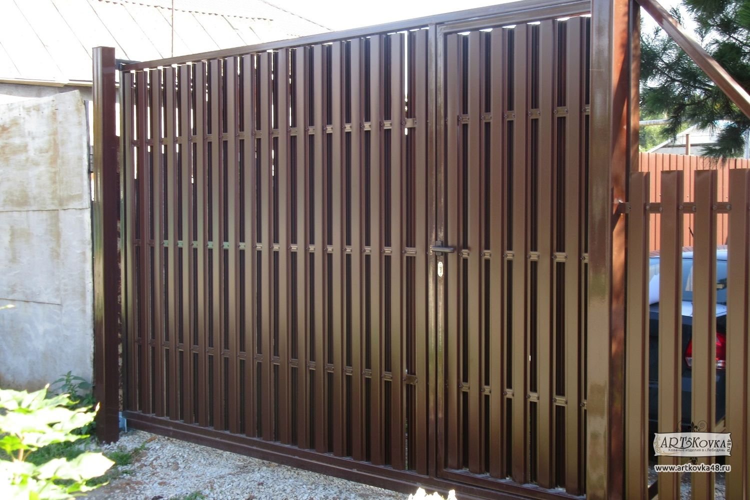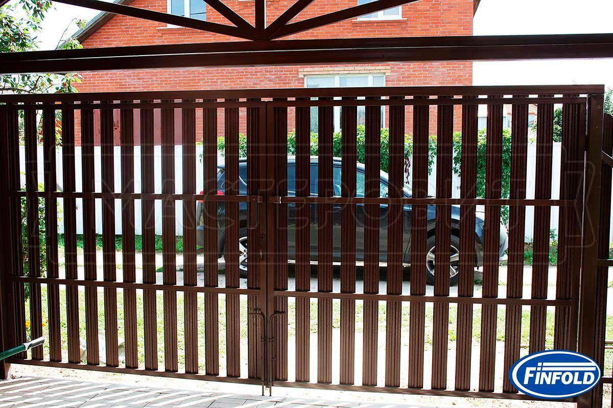 Ворота из евроштакетника коричневый