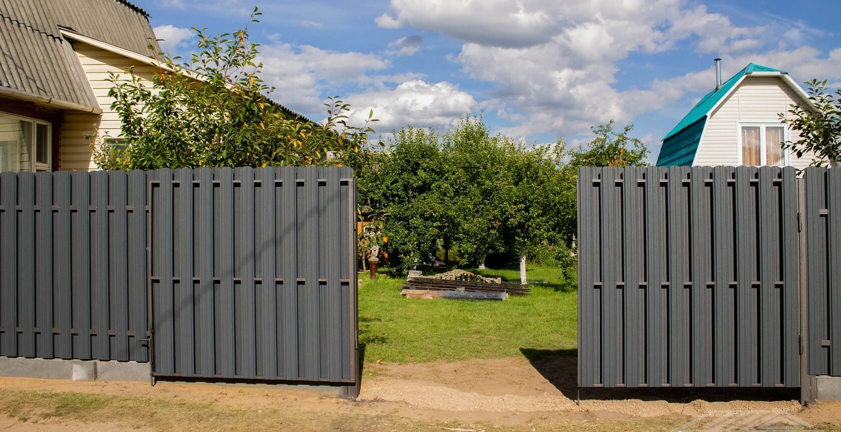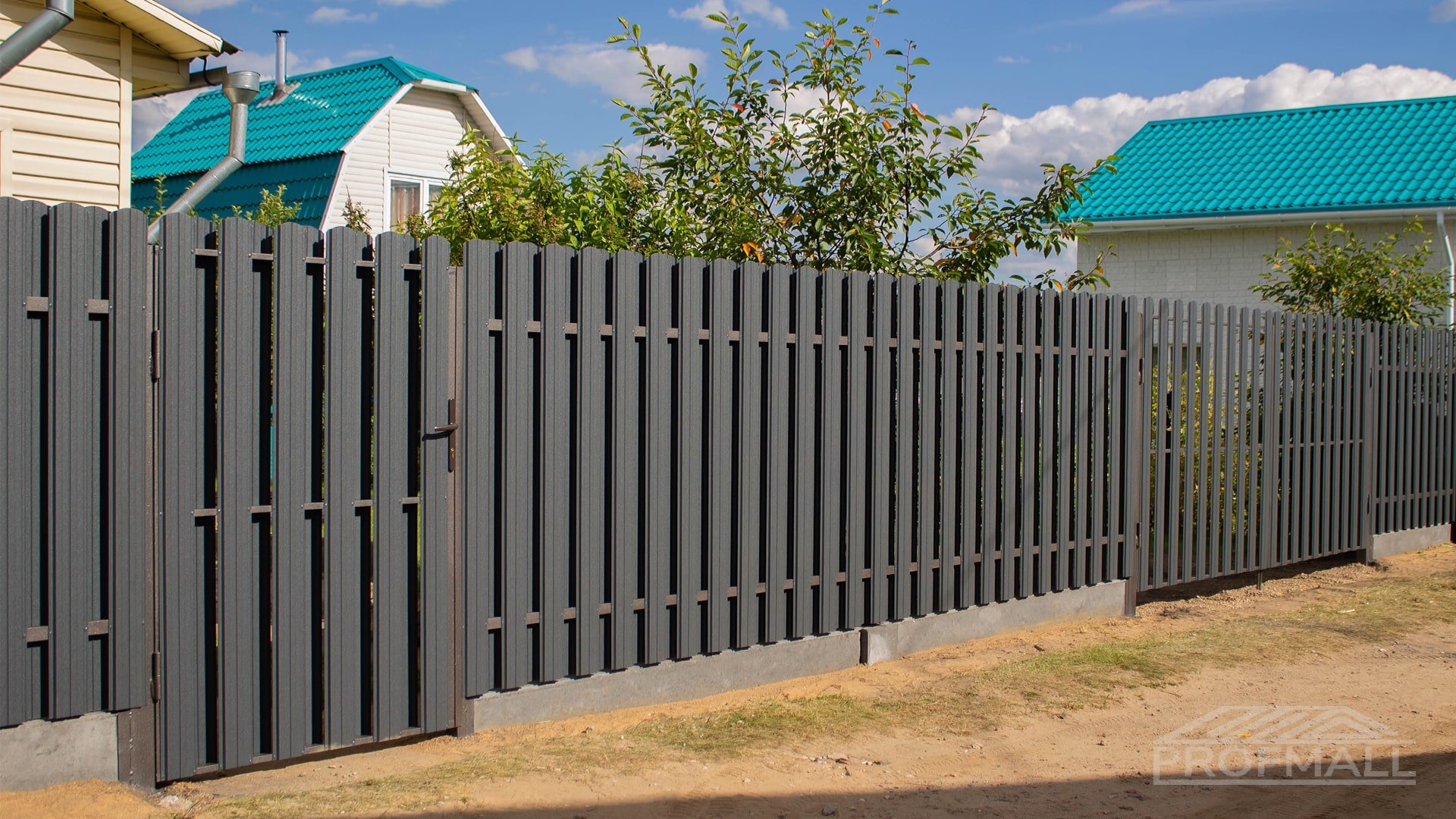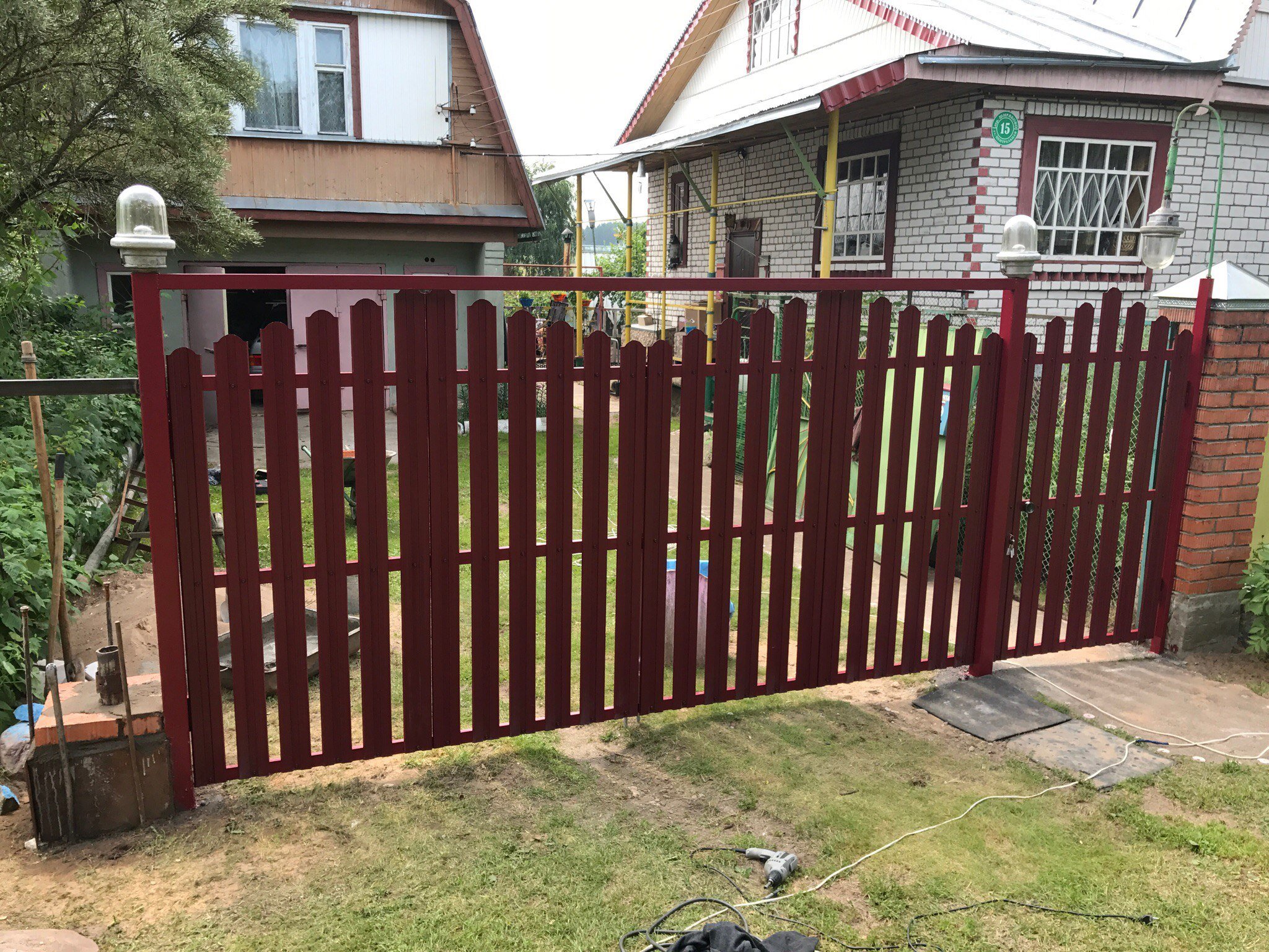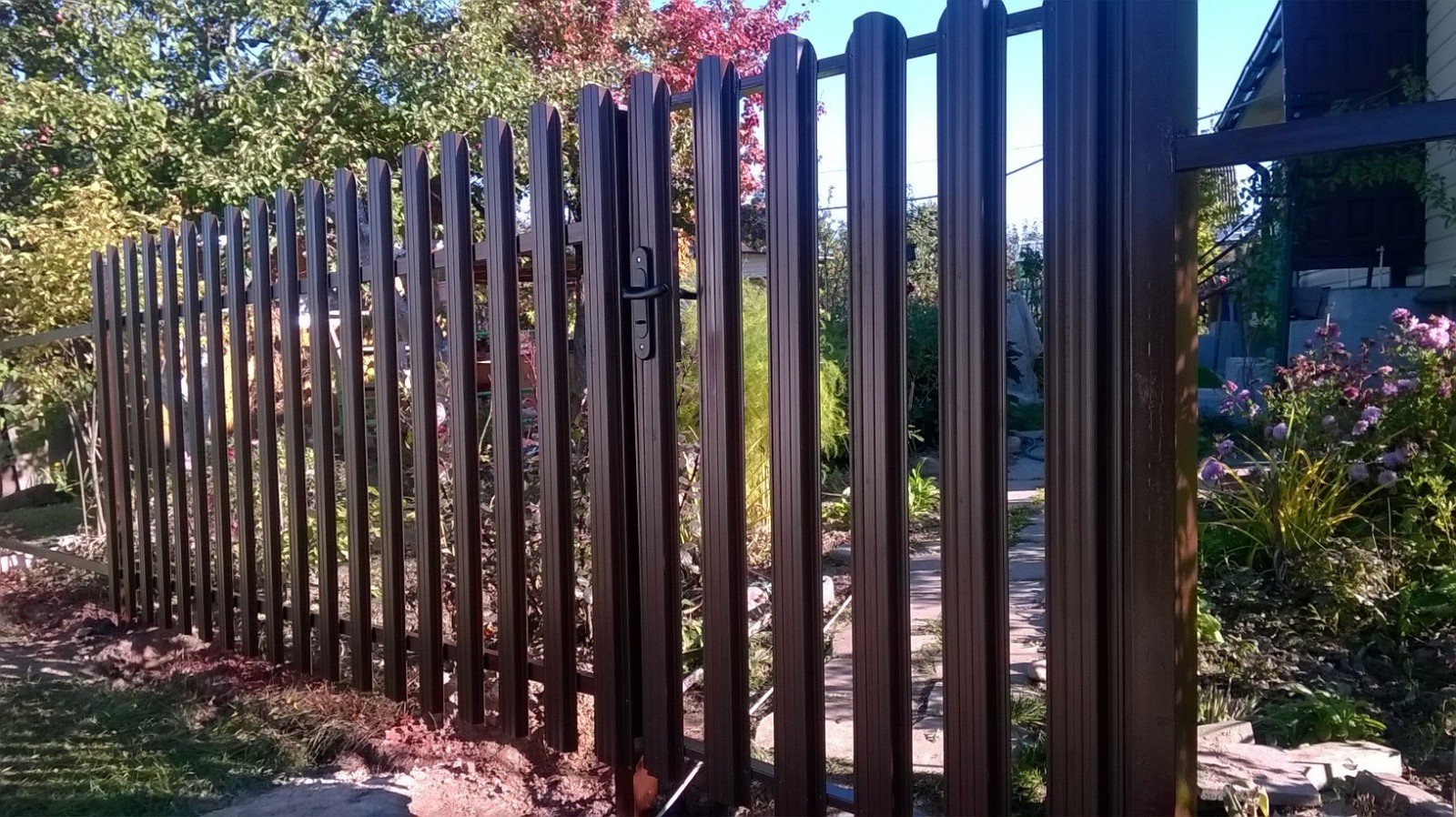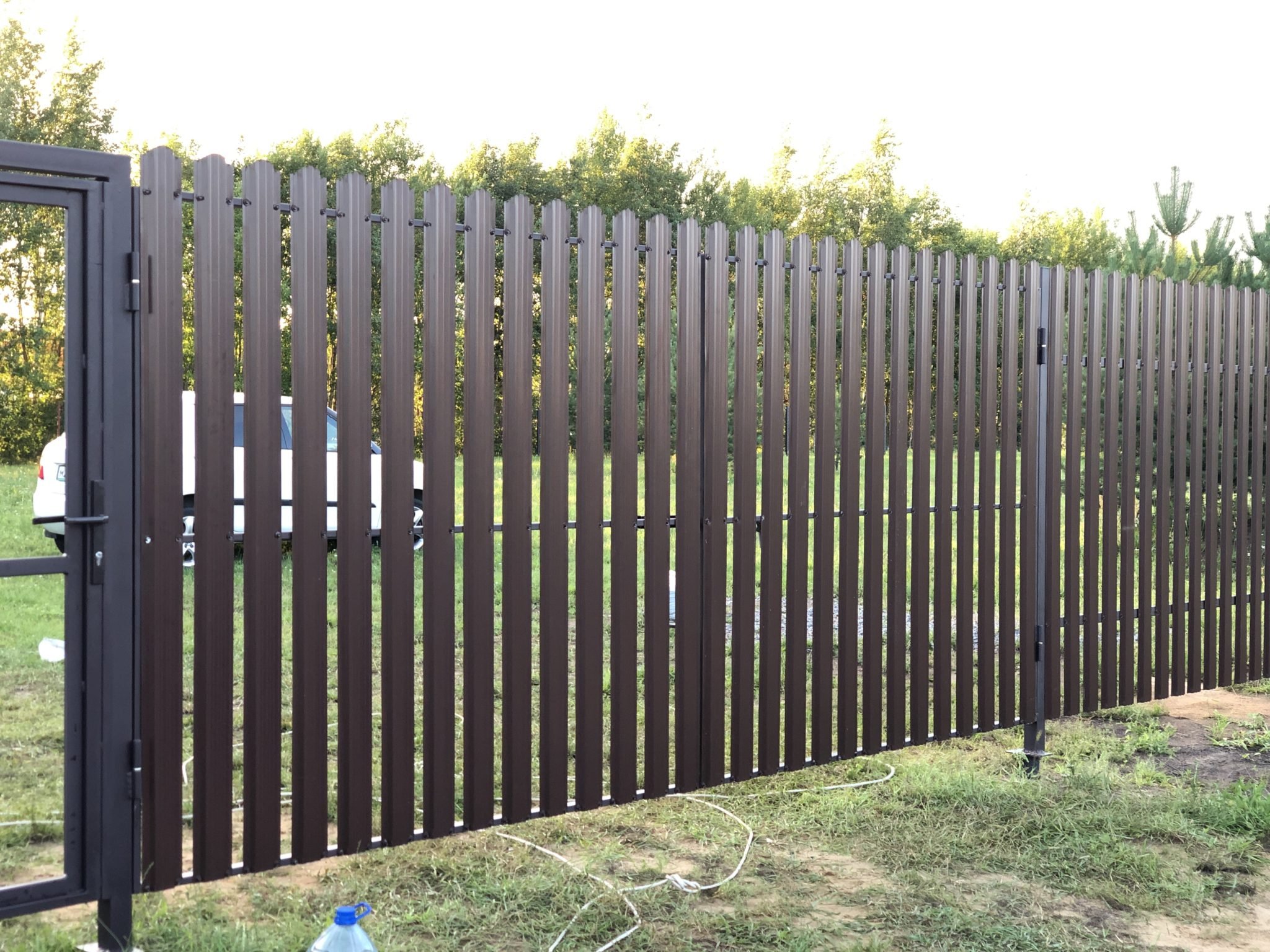 Забор из евроштакетника и ворота из профнастила