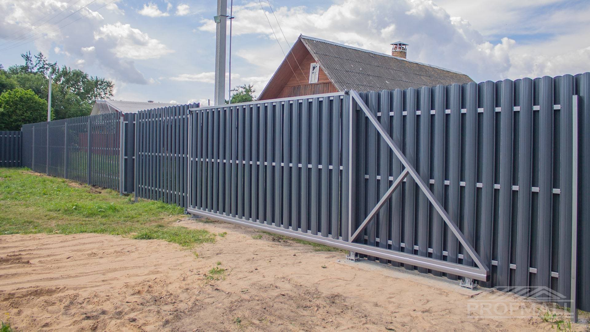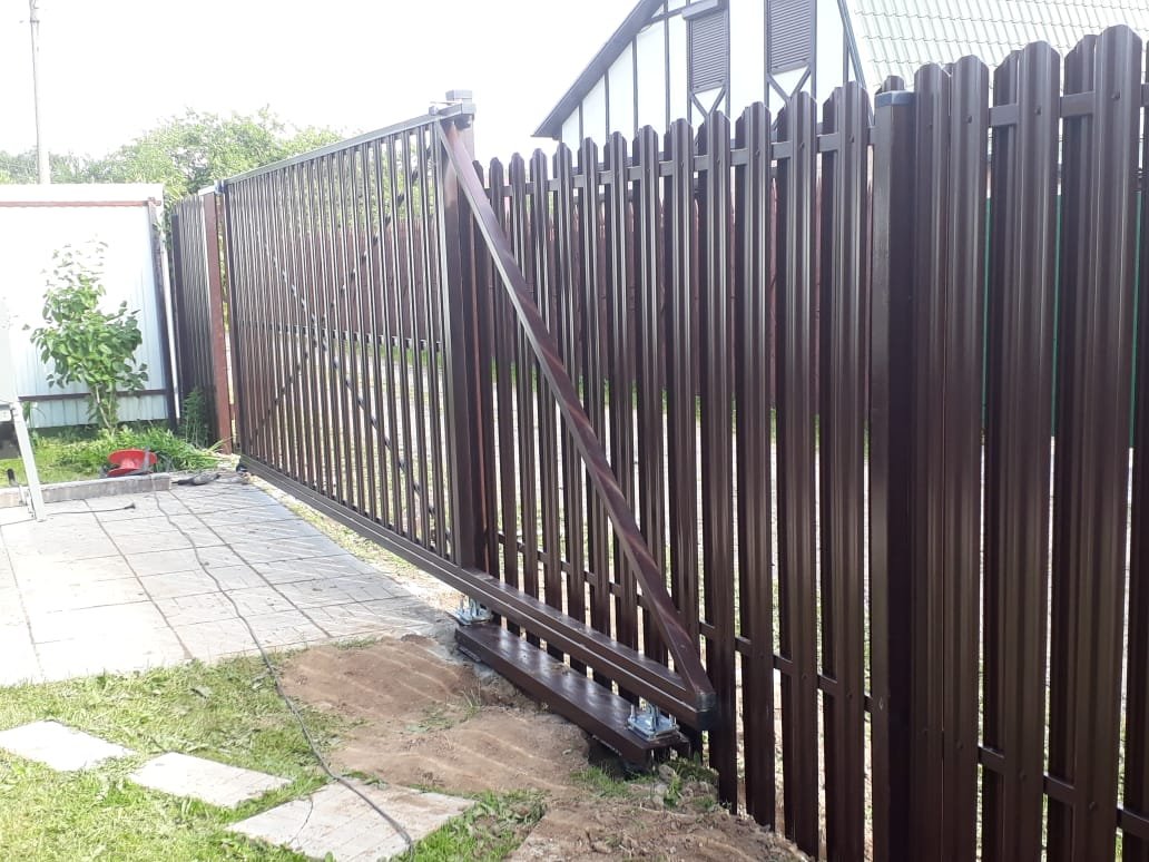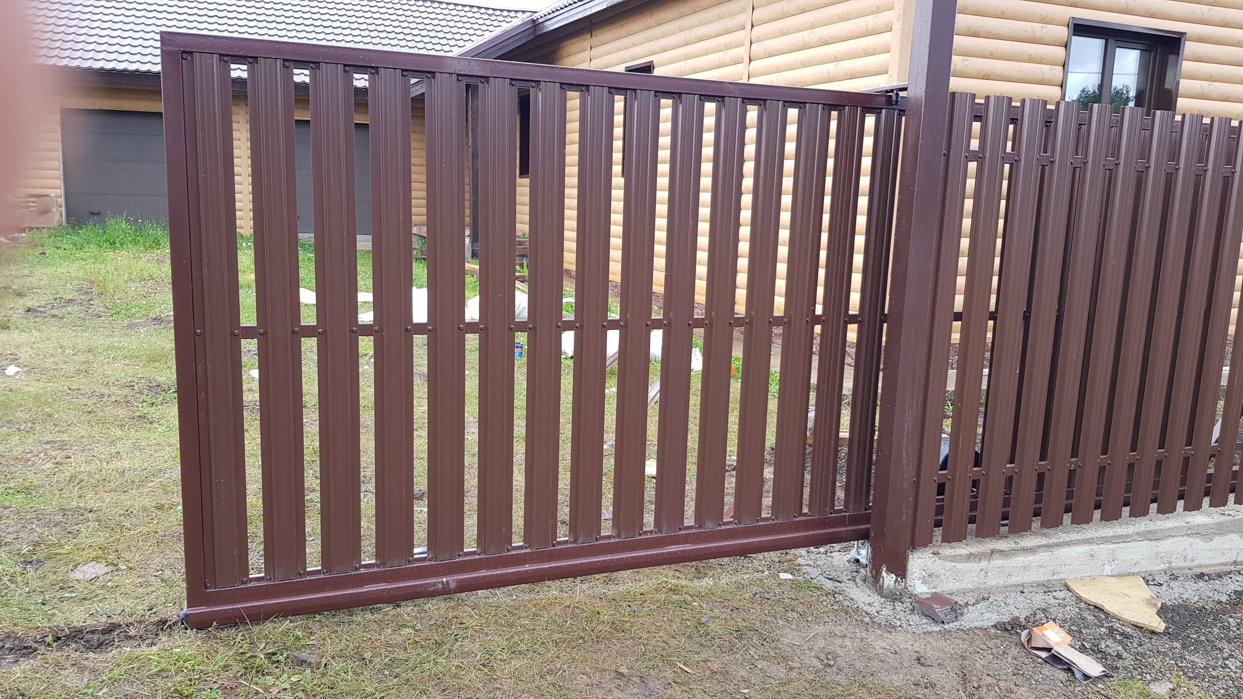 Откатные ворота из евроштакетника