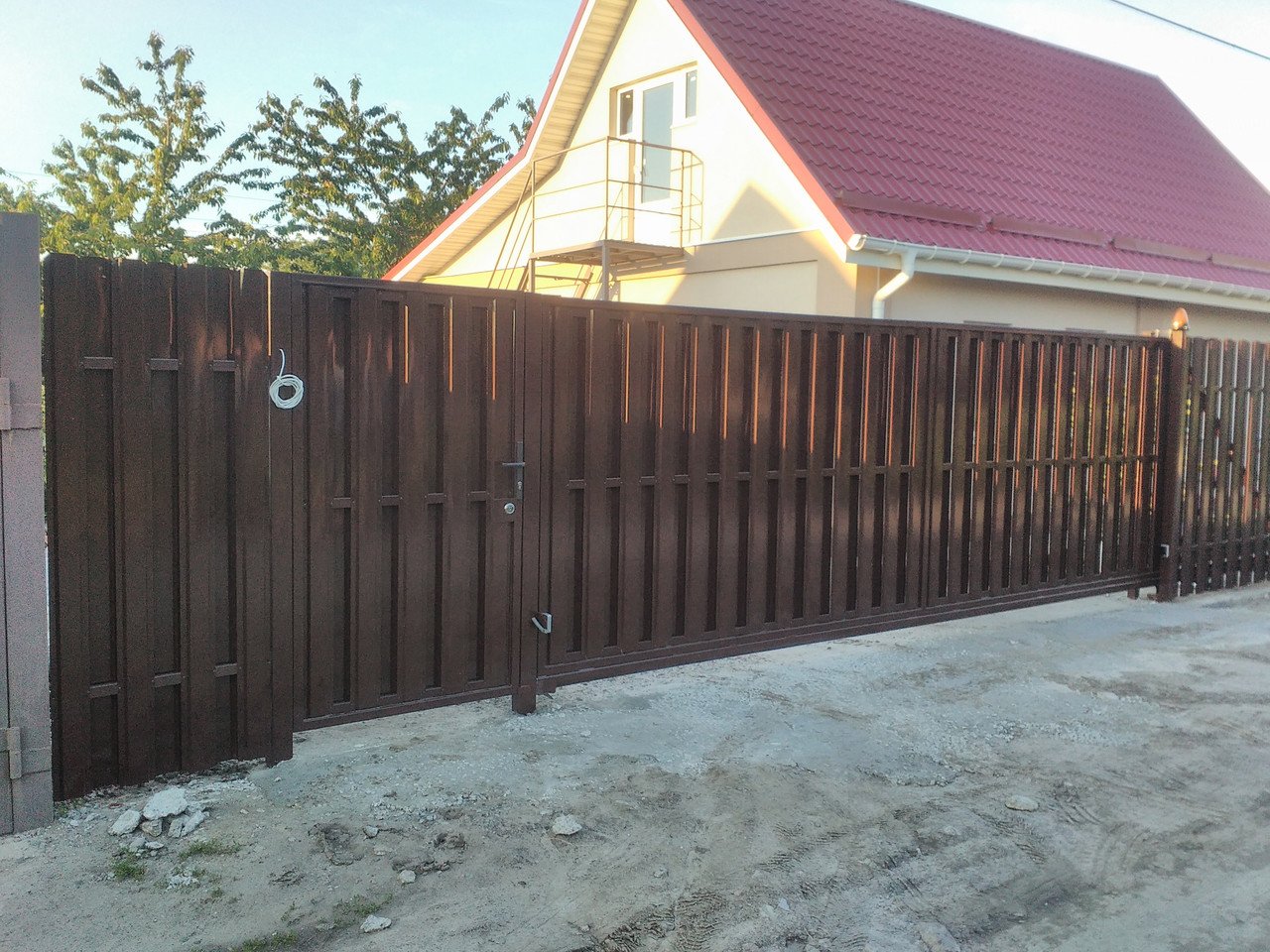 Откатные ворота с евроштакетника