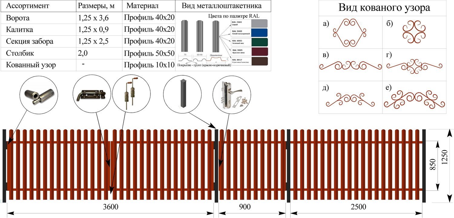 Монтаж металлоштакетника схема