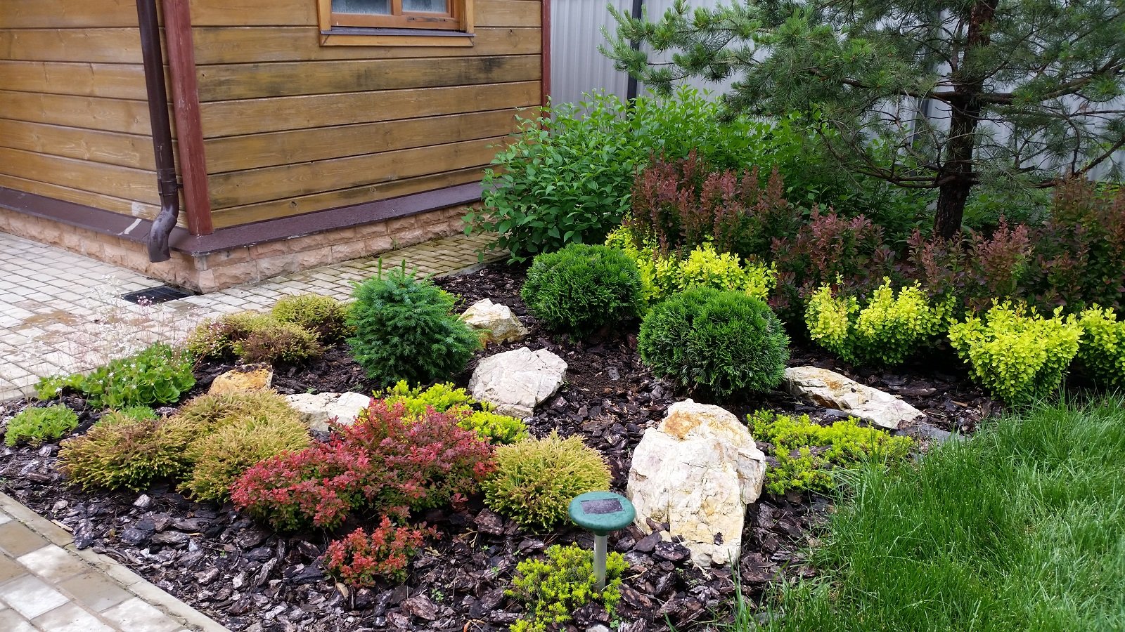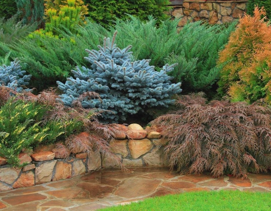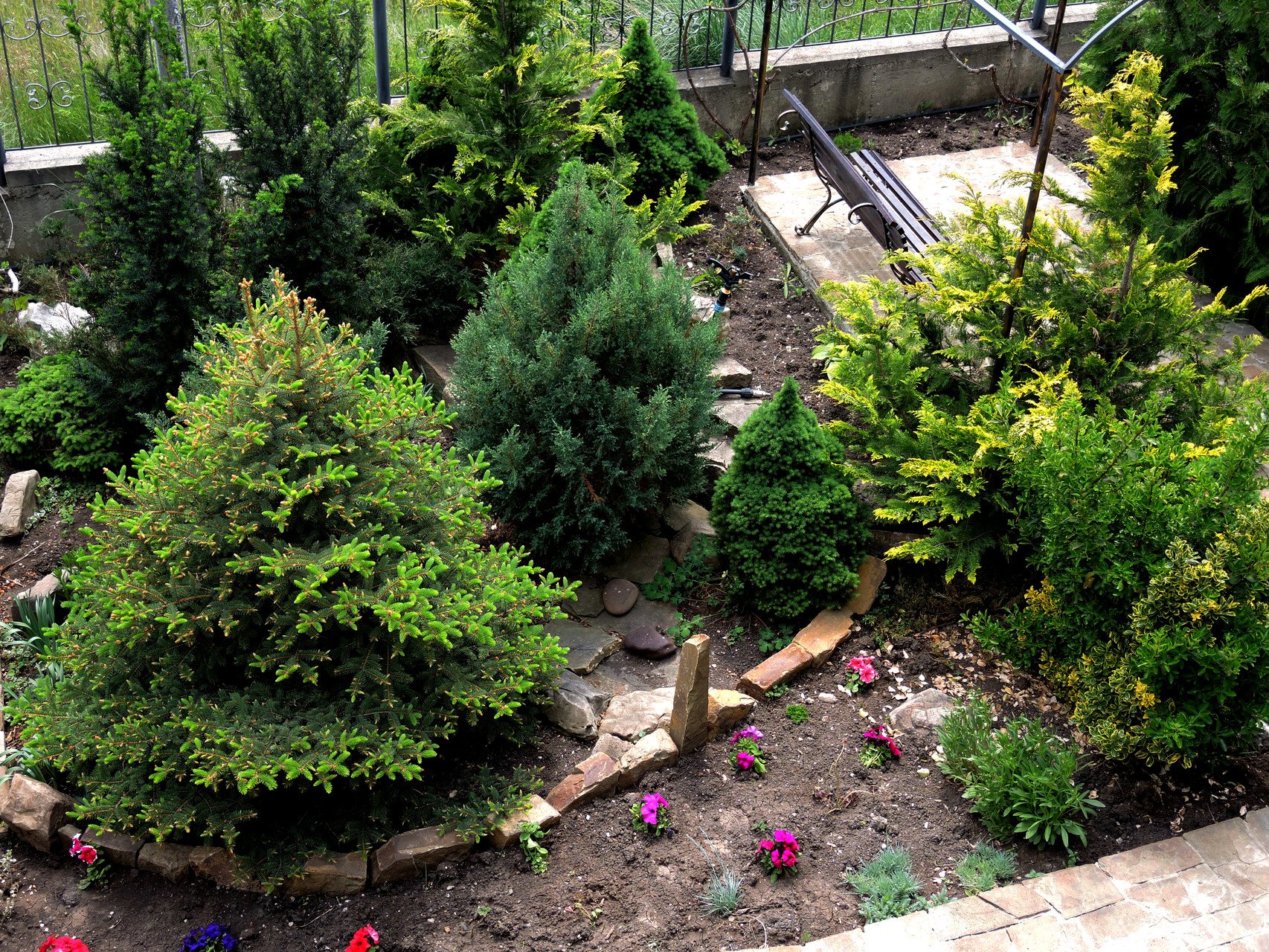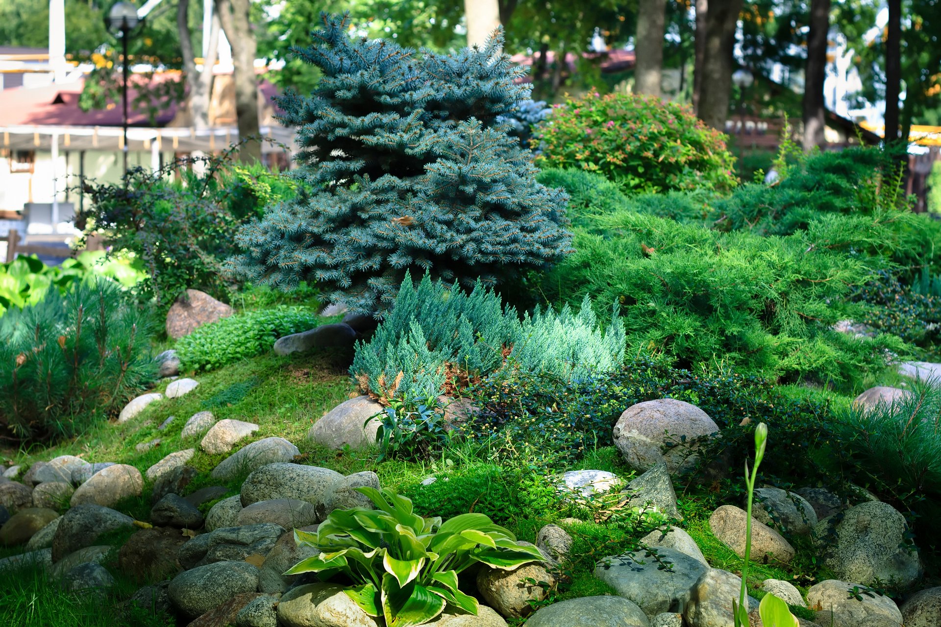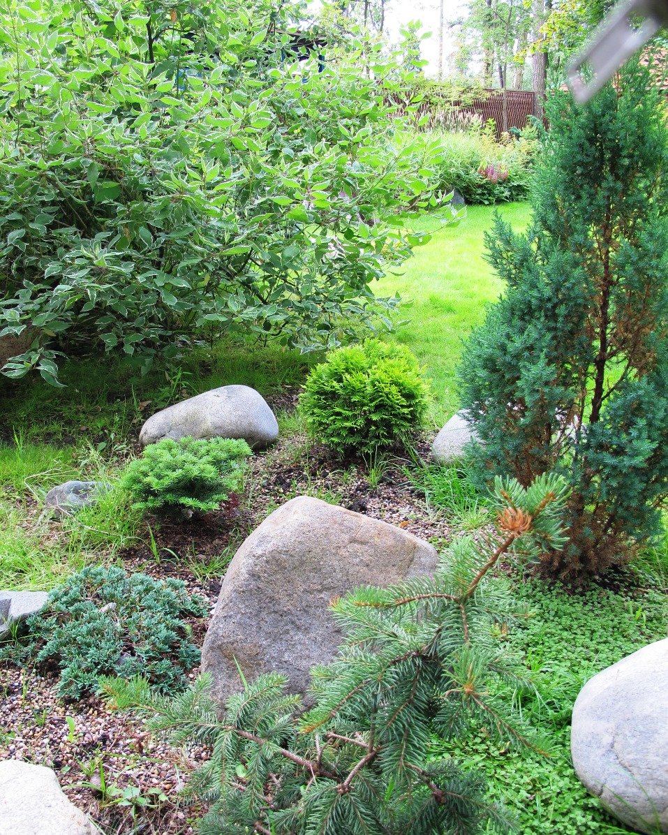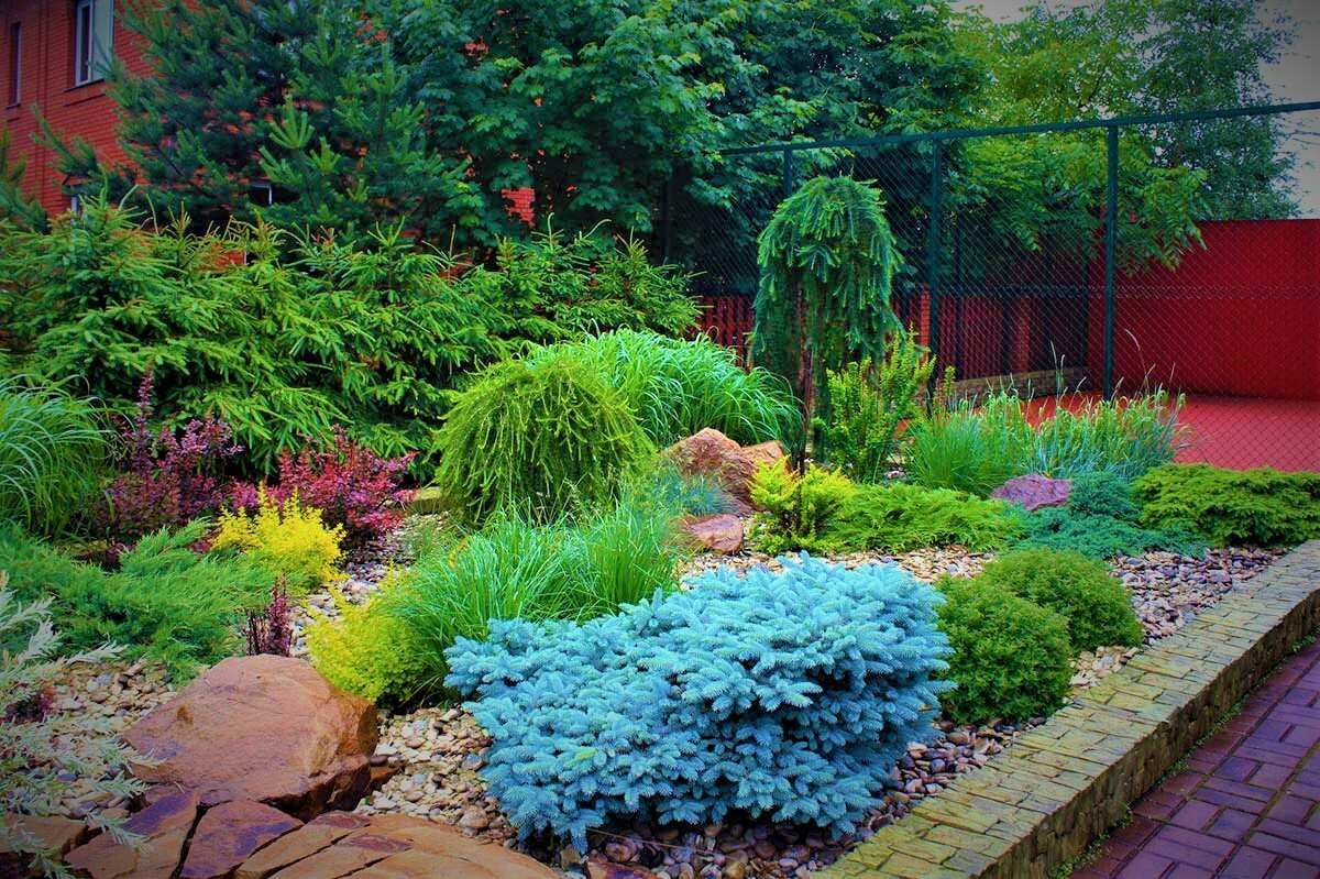 Дизайн альпийской горки на даче своими руками с елью Глаука Глобоза