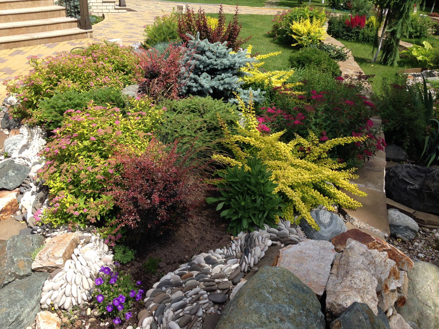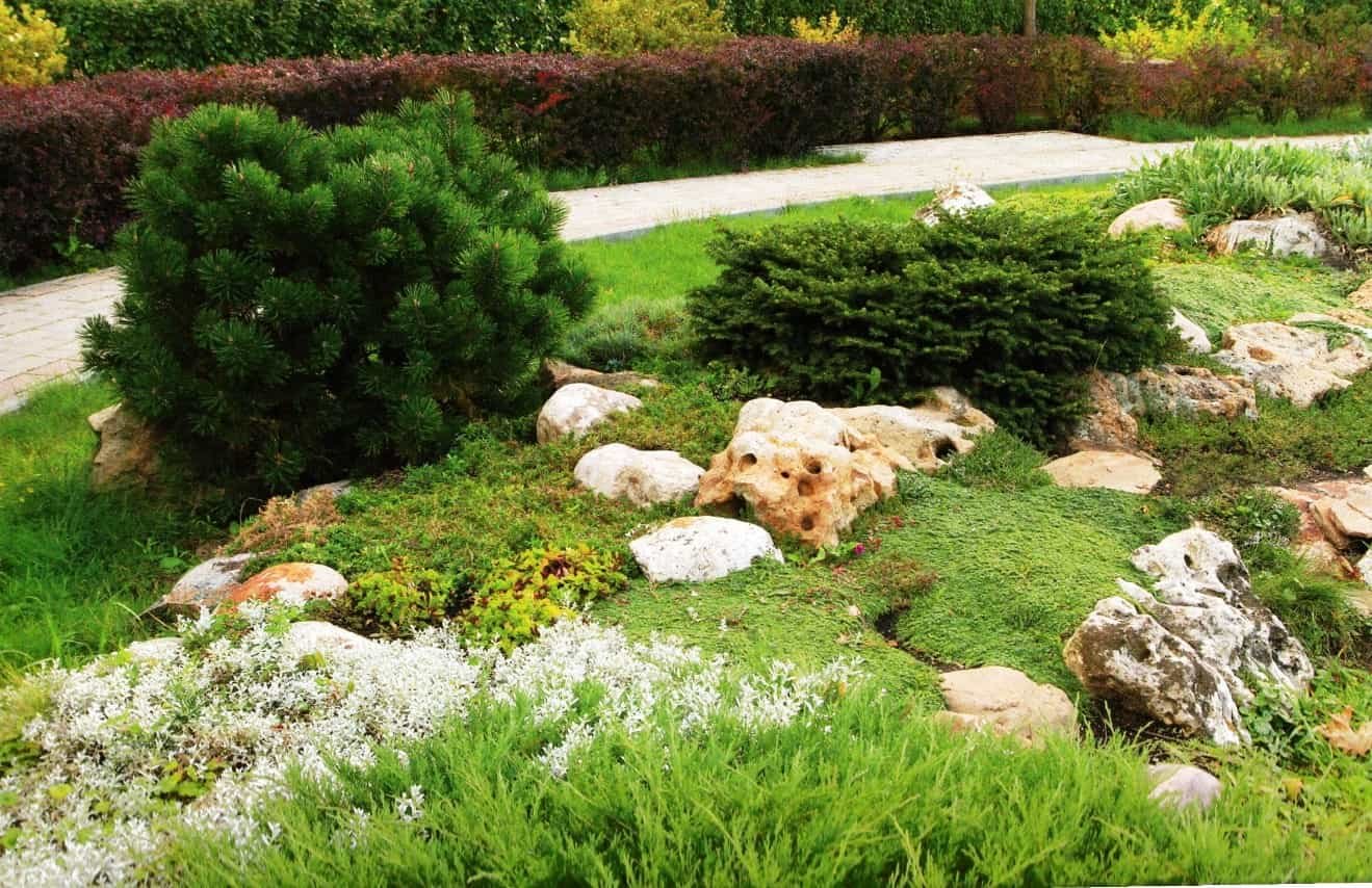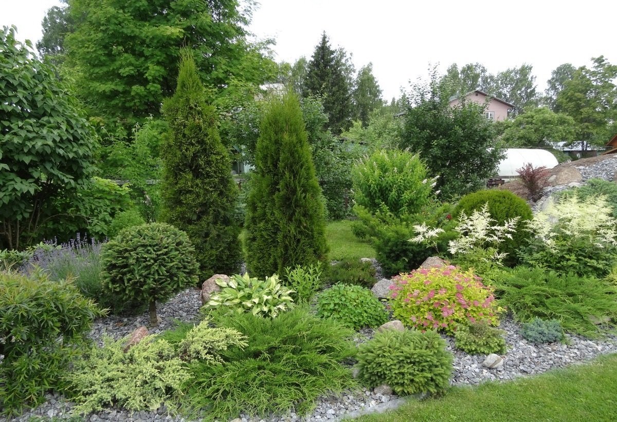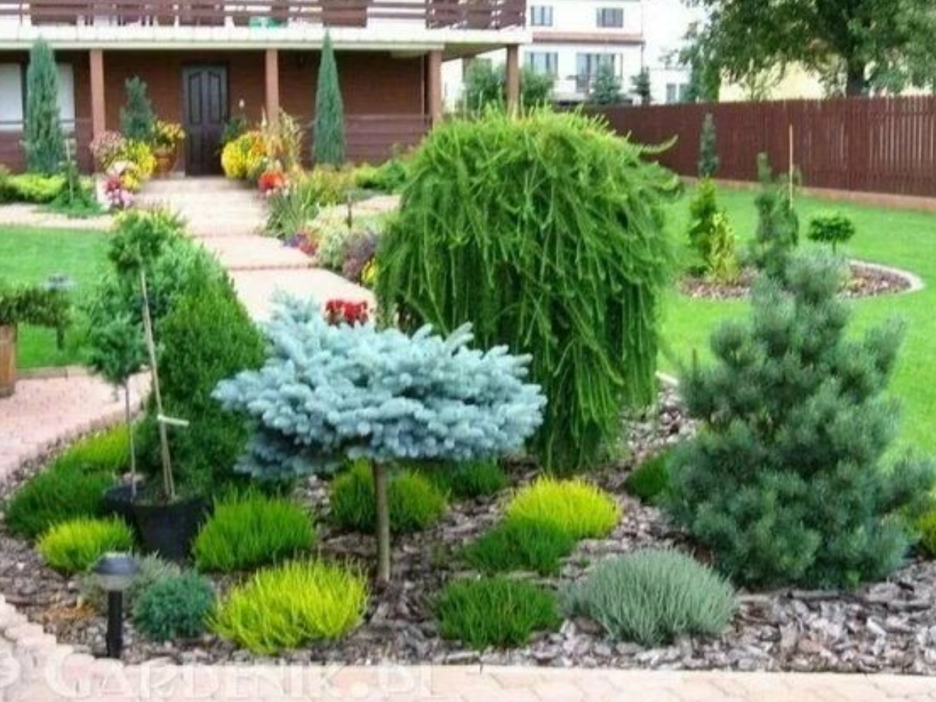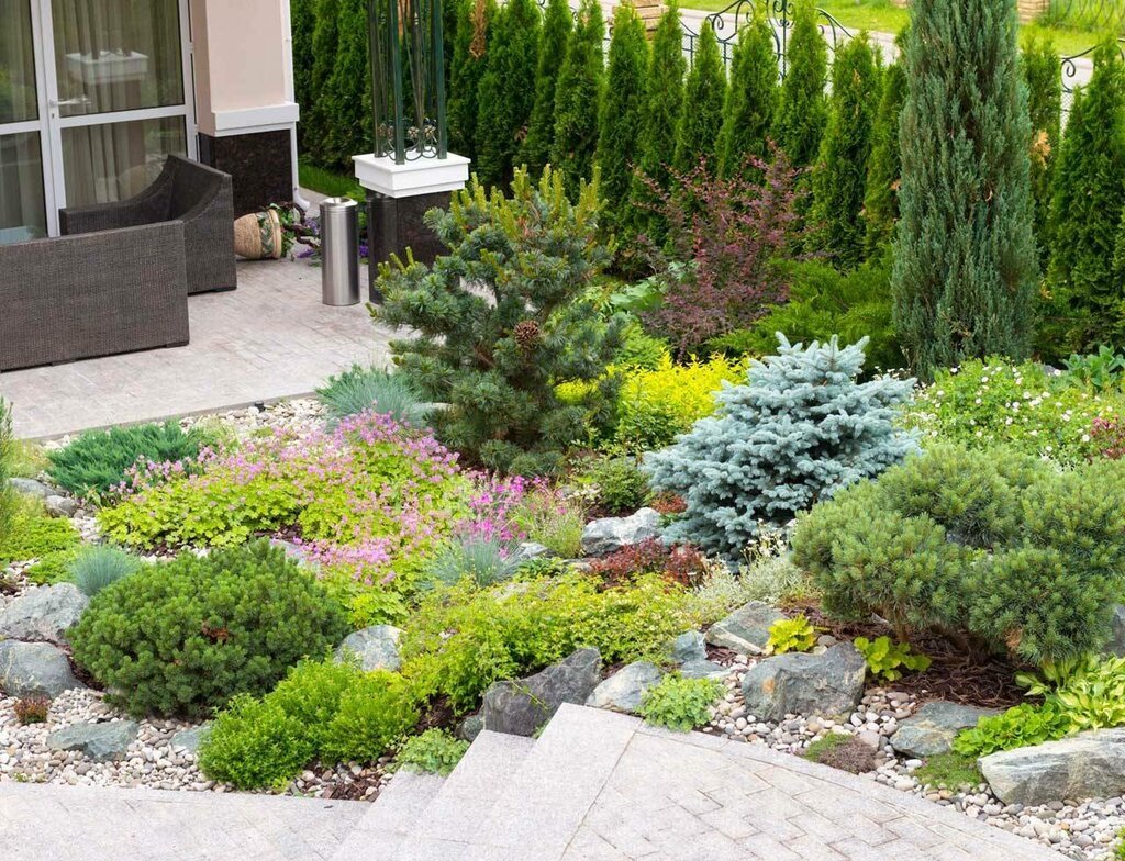Дизайн альпийской горки на даче своими руками с елью Глаука Глобоза
