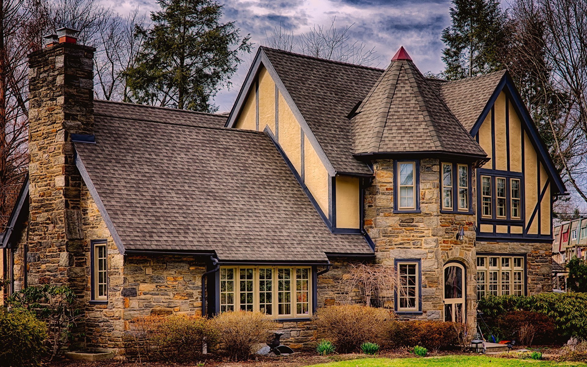 Каменный дом Тюдор с башней