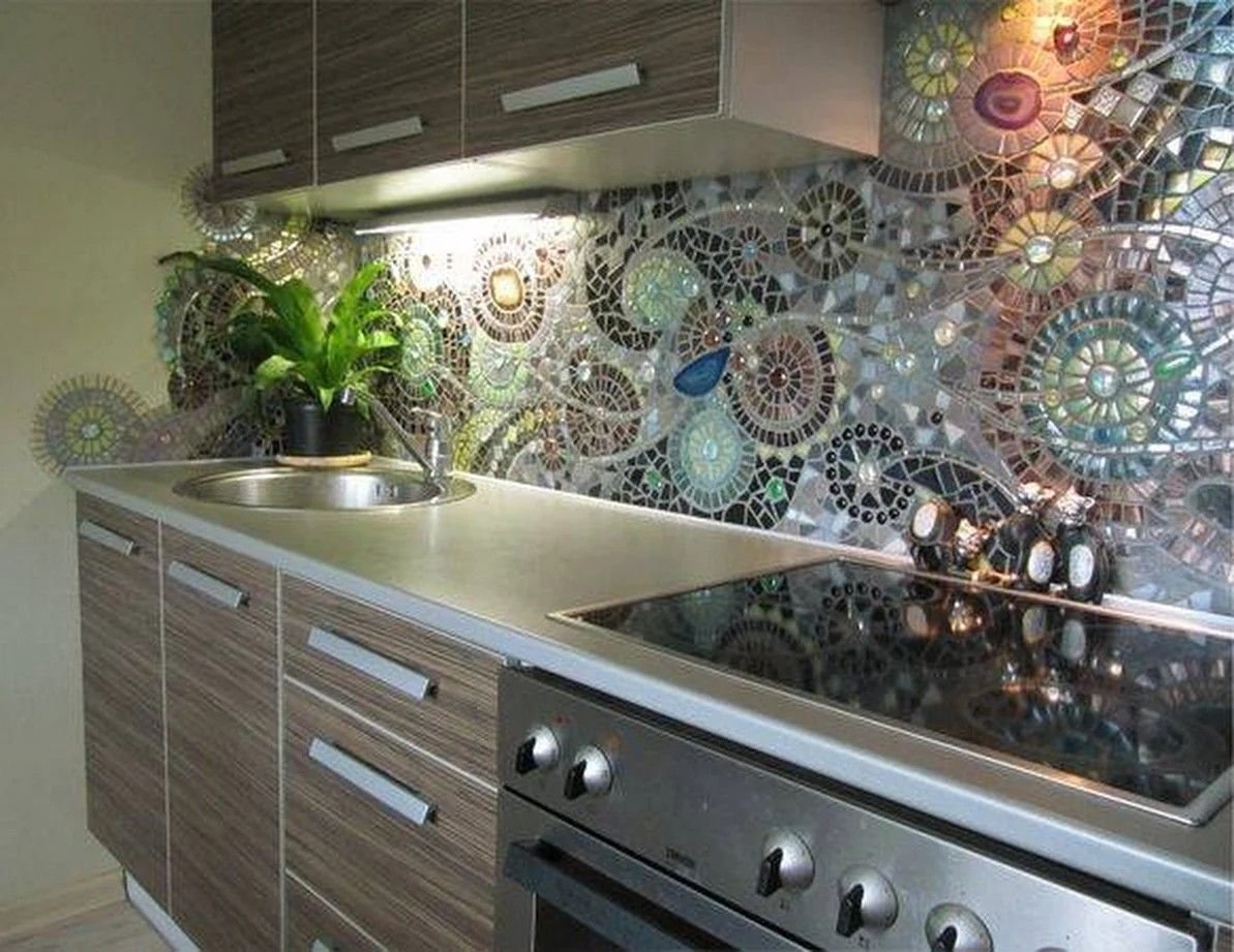 Фартук на кухню из стеклянной мозаики