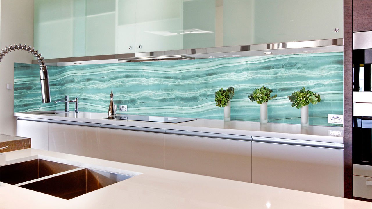Стеклянные панели для кухни с фотоизображением с бирюзой