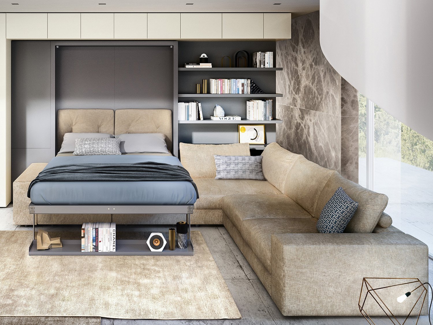 Кровать трансформер в интерьере однокомнатной квартиры