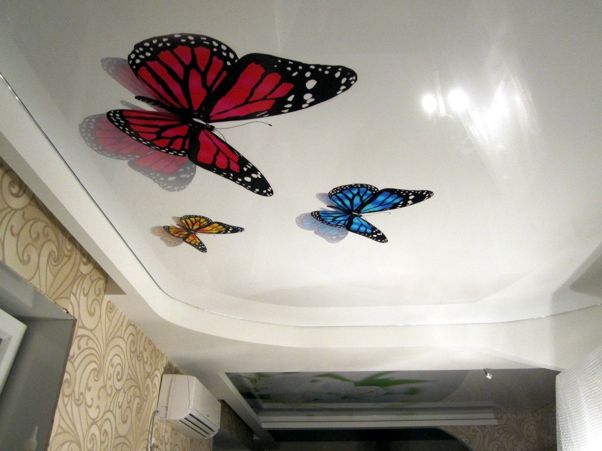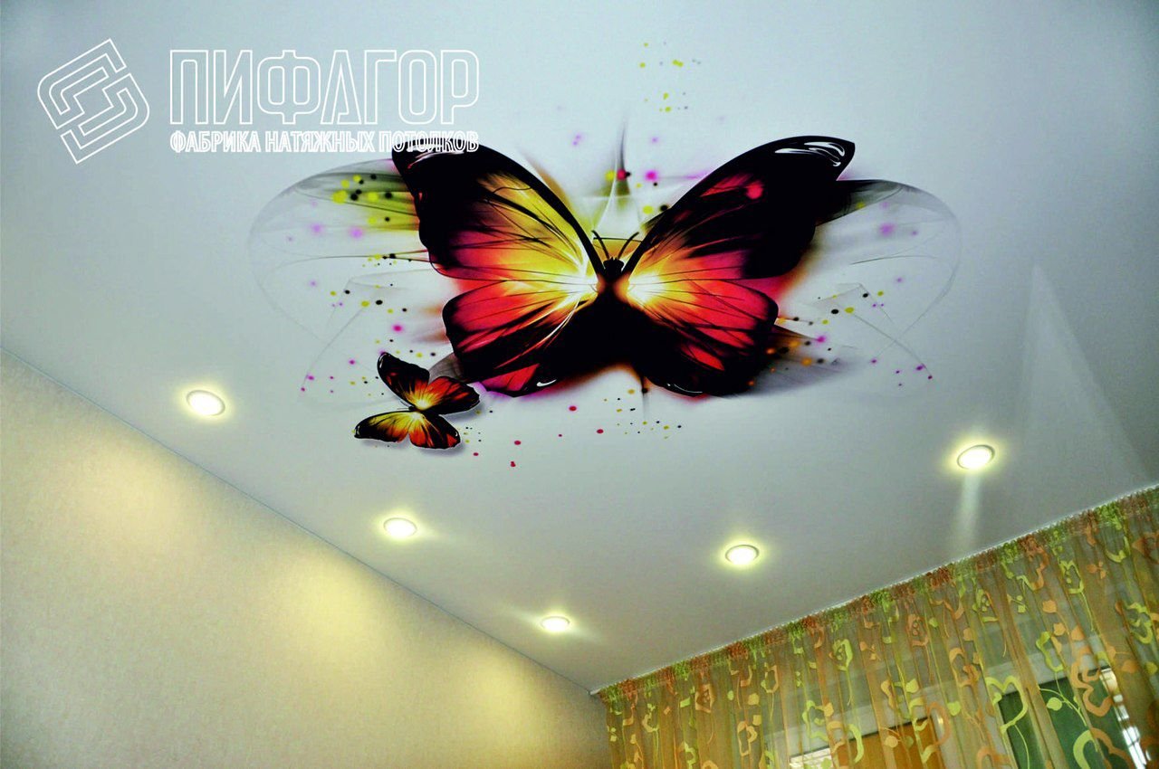Натяжные потолки с фотопечатью бабочки