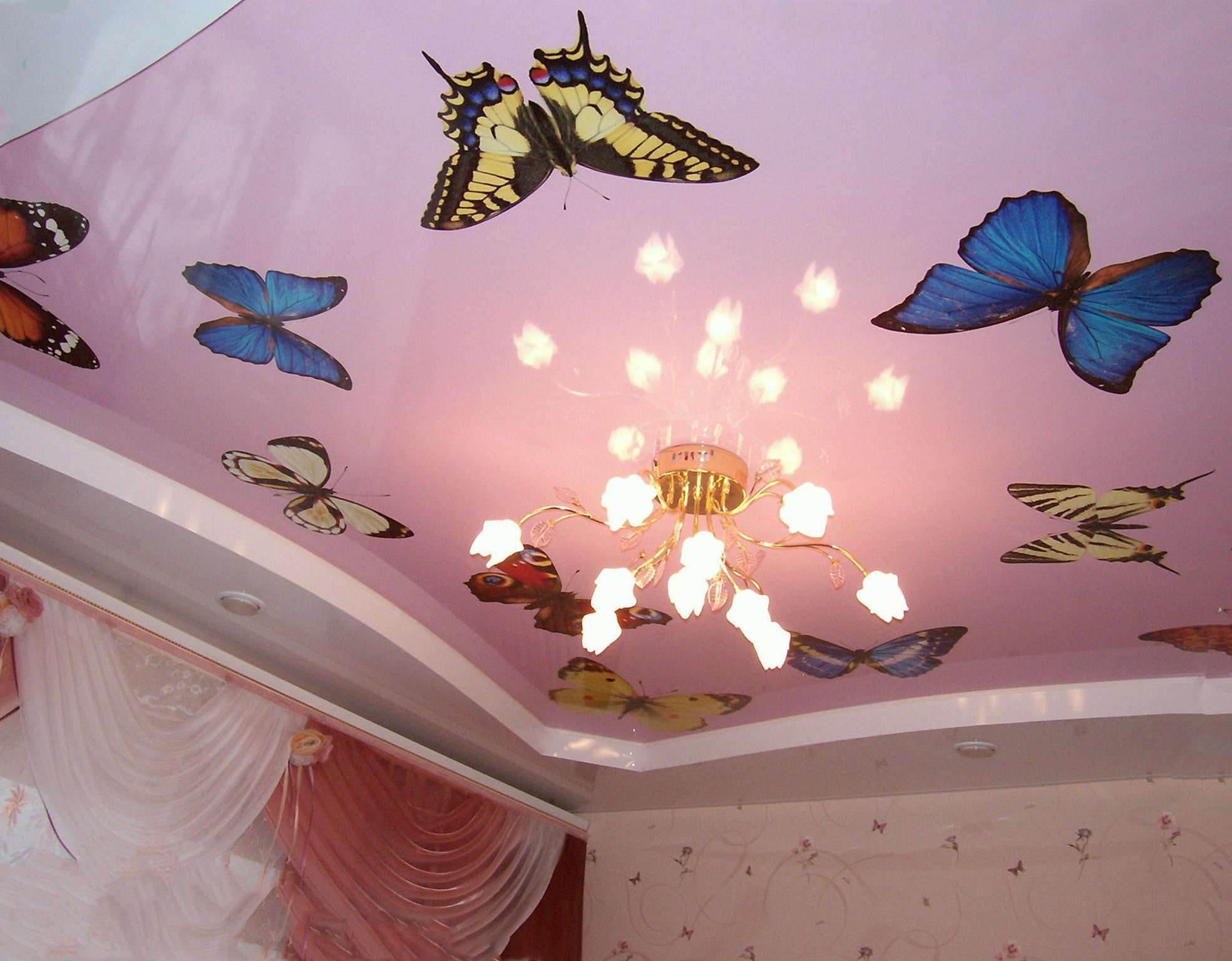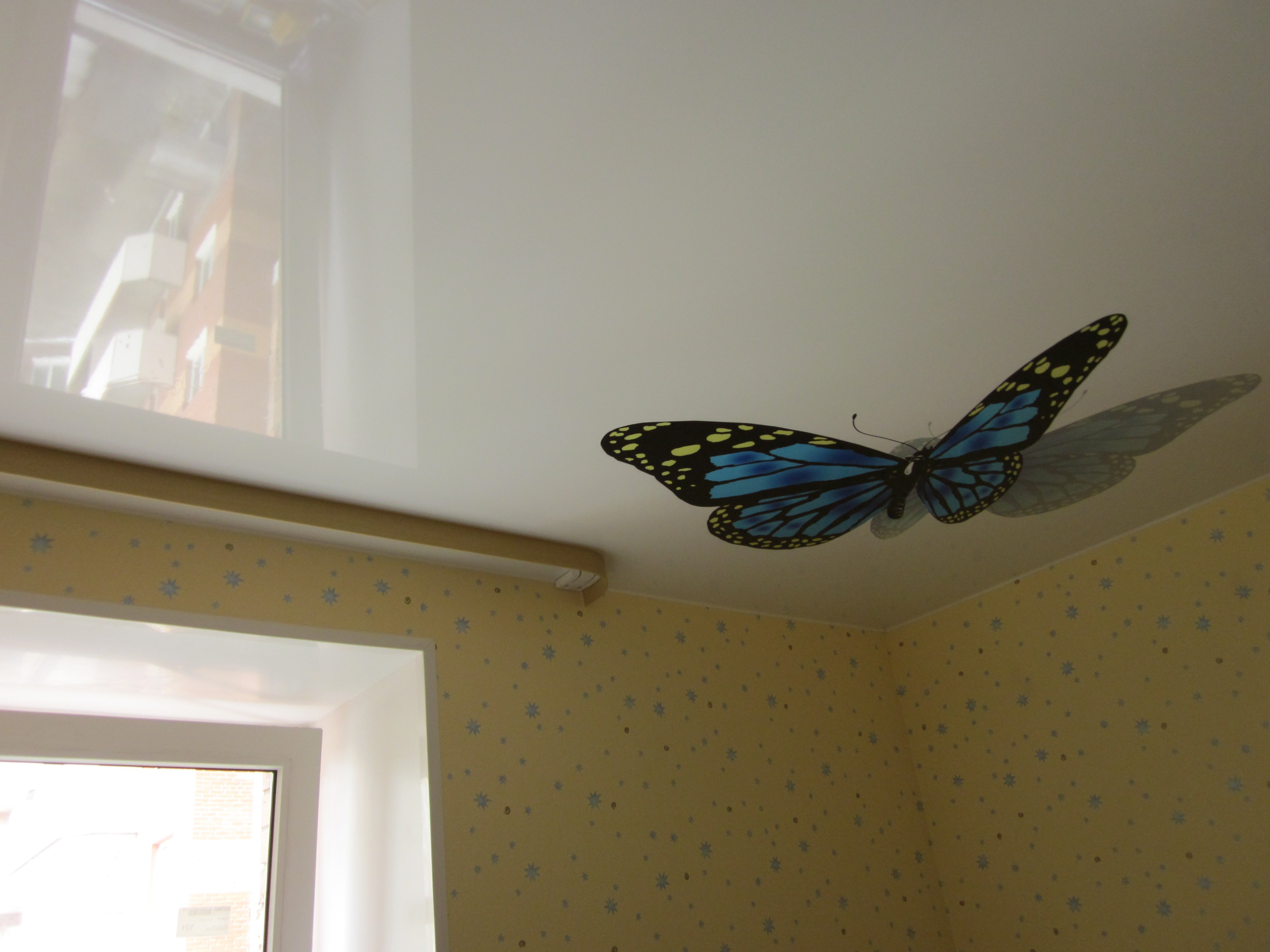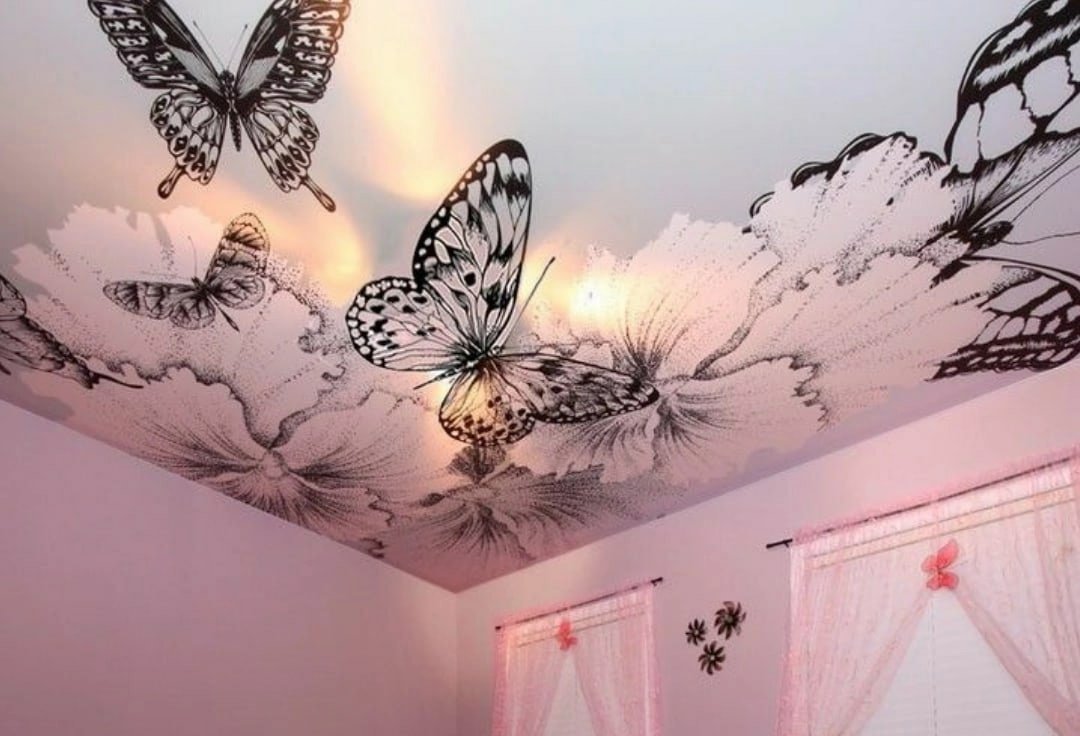 Натяжной потолок в комнату бабочки