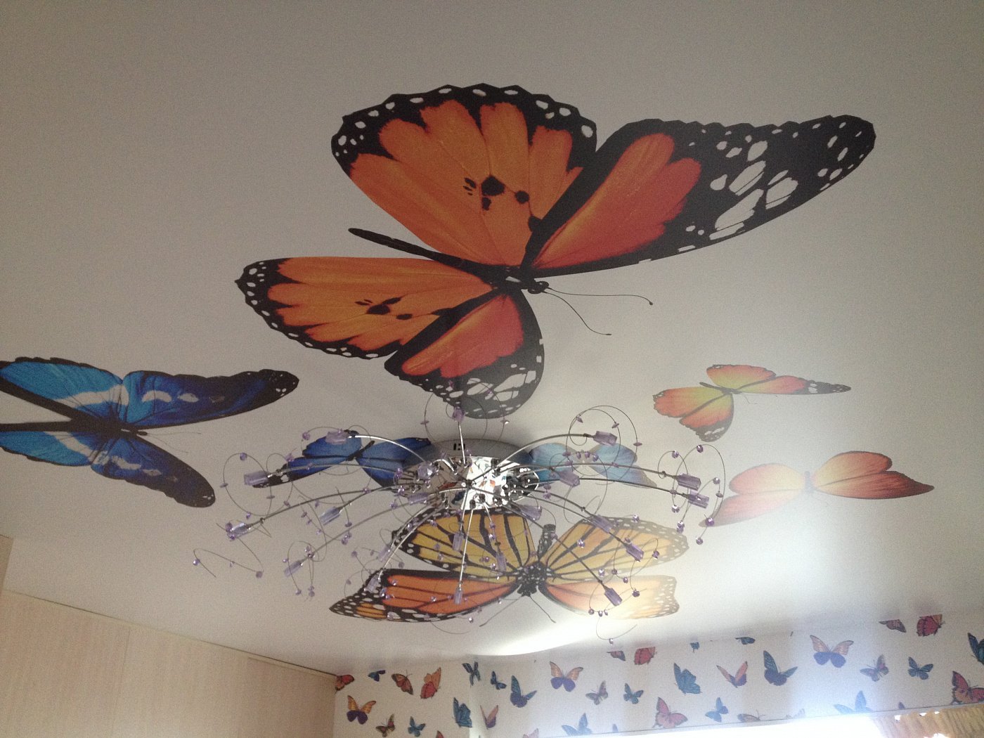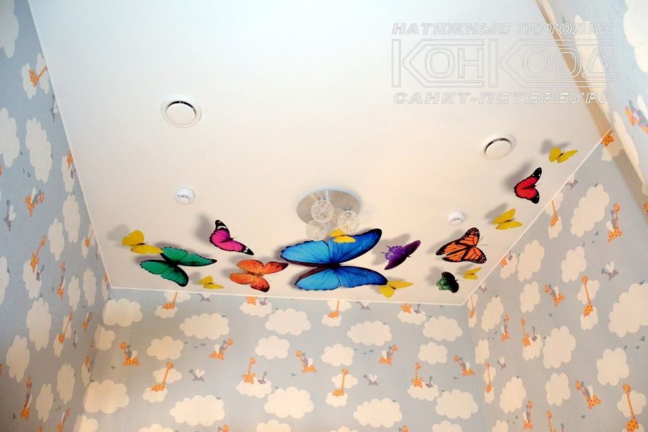 Потолок с бабочками в детскую