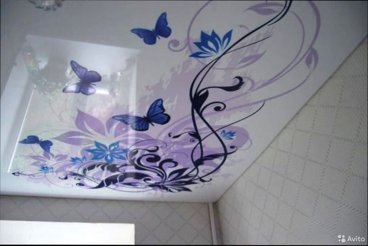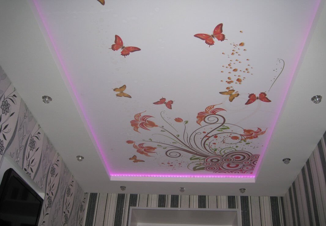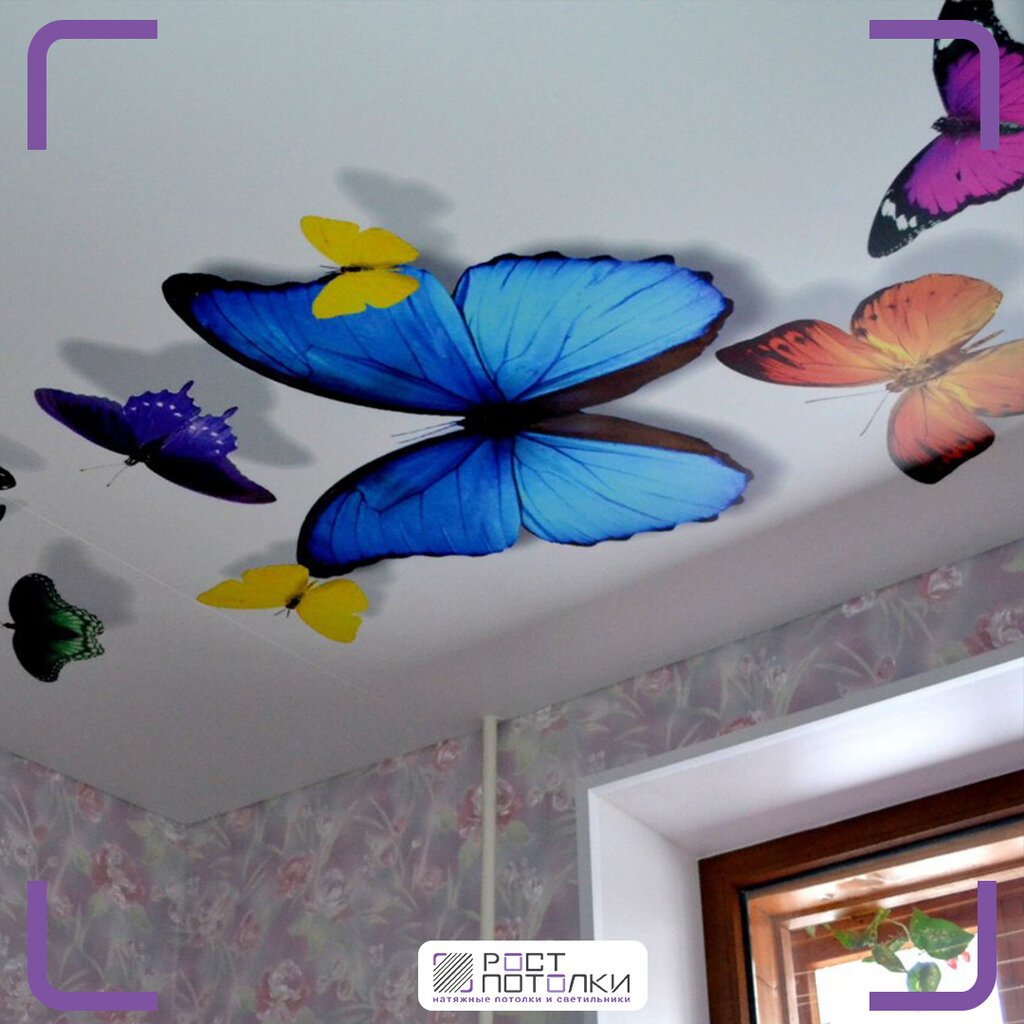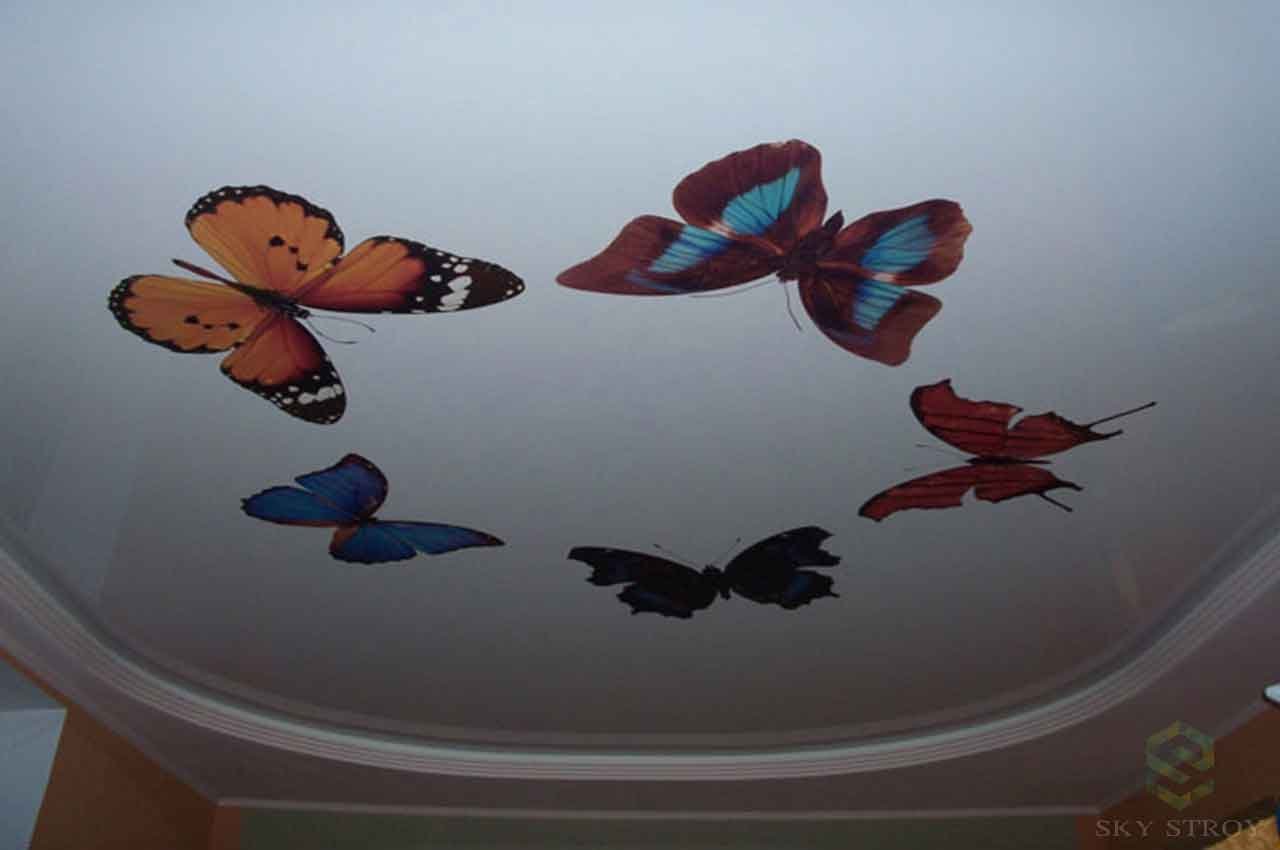 Примеры фотопечати на потолке бабочки цветы