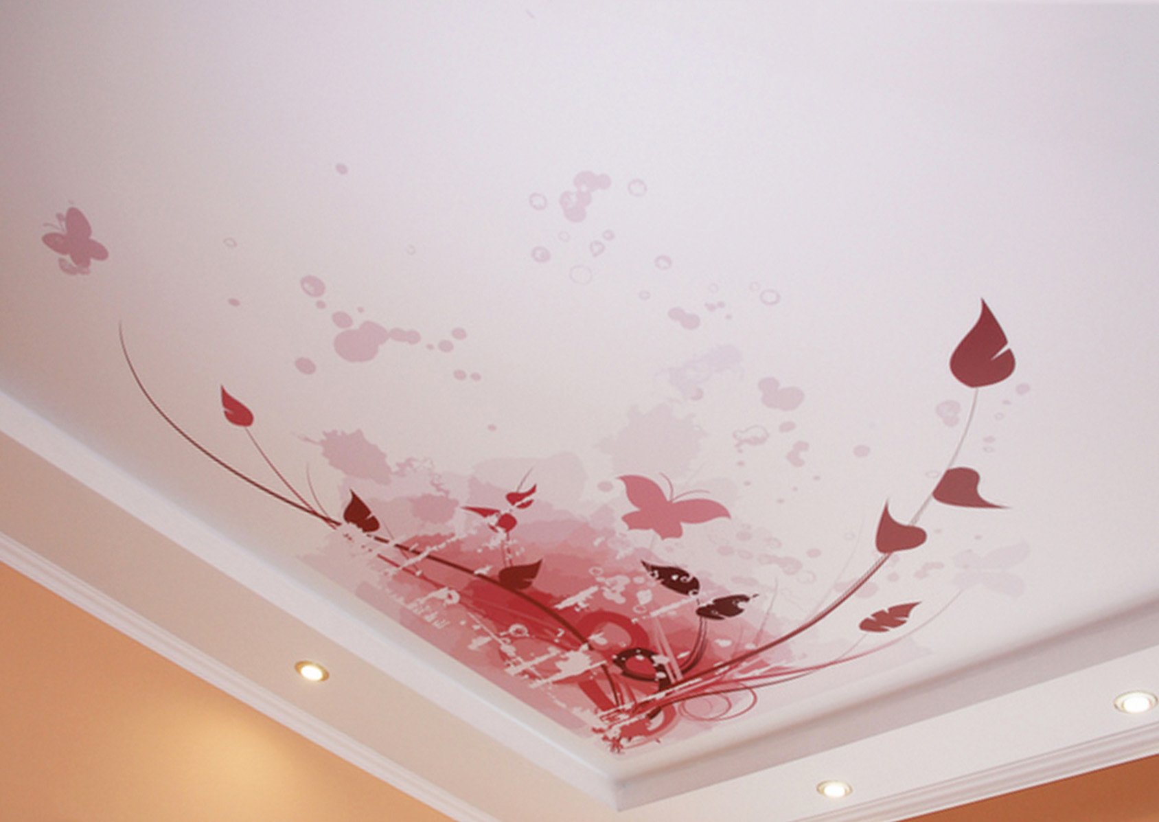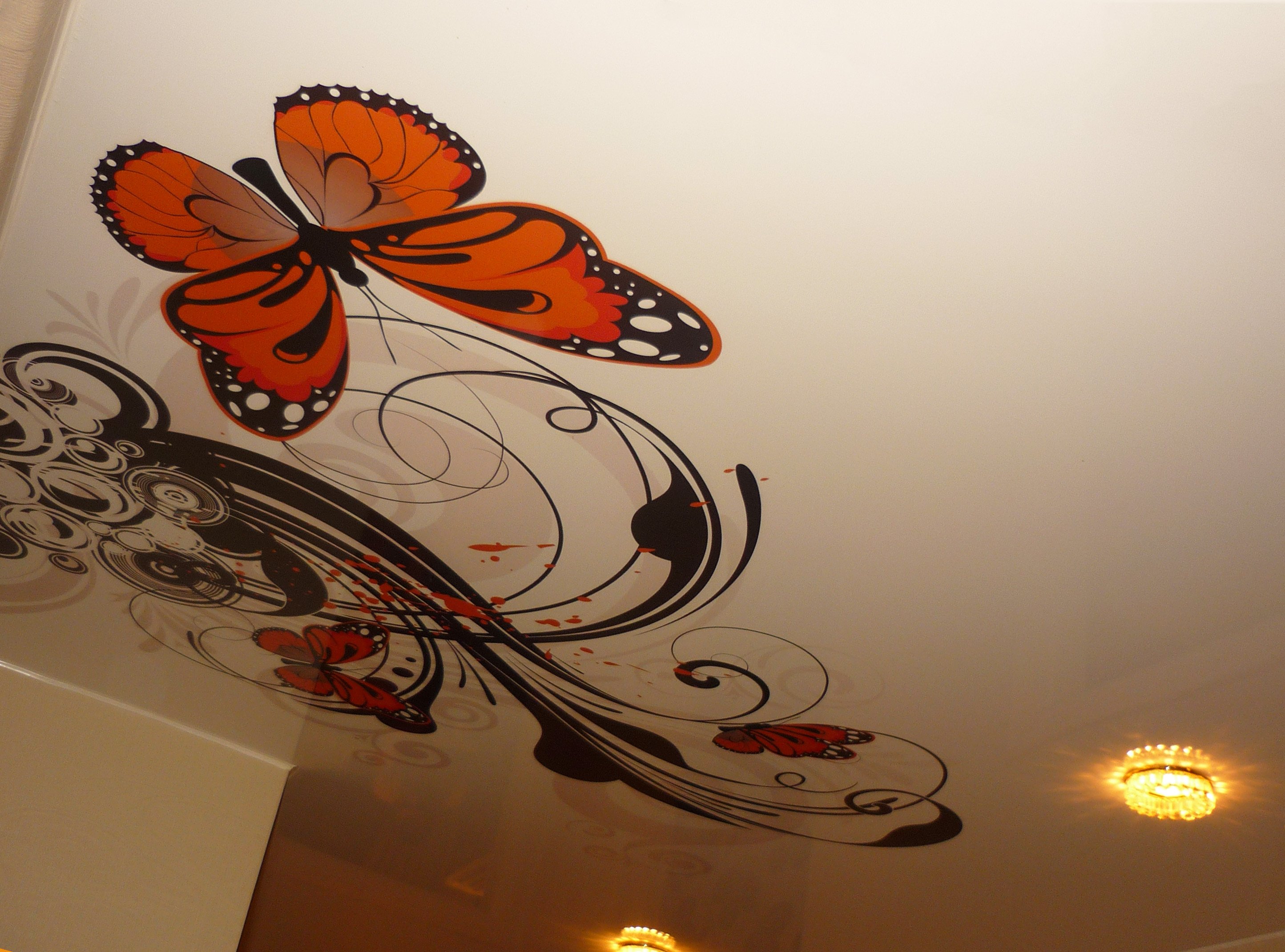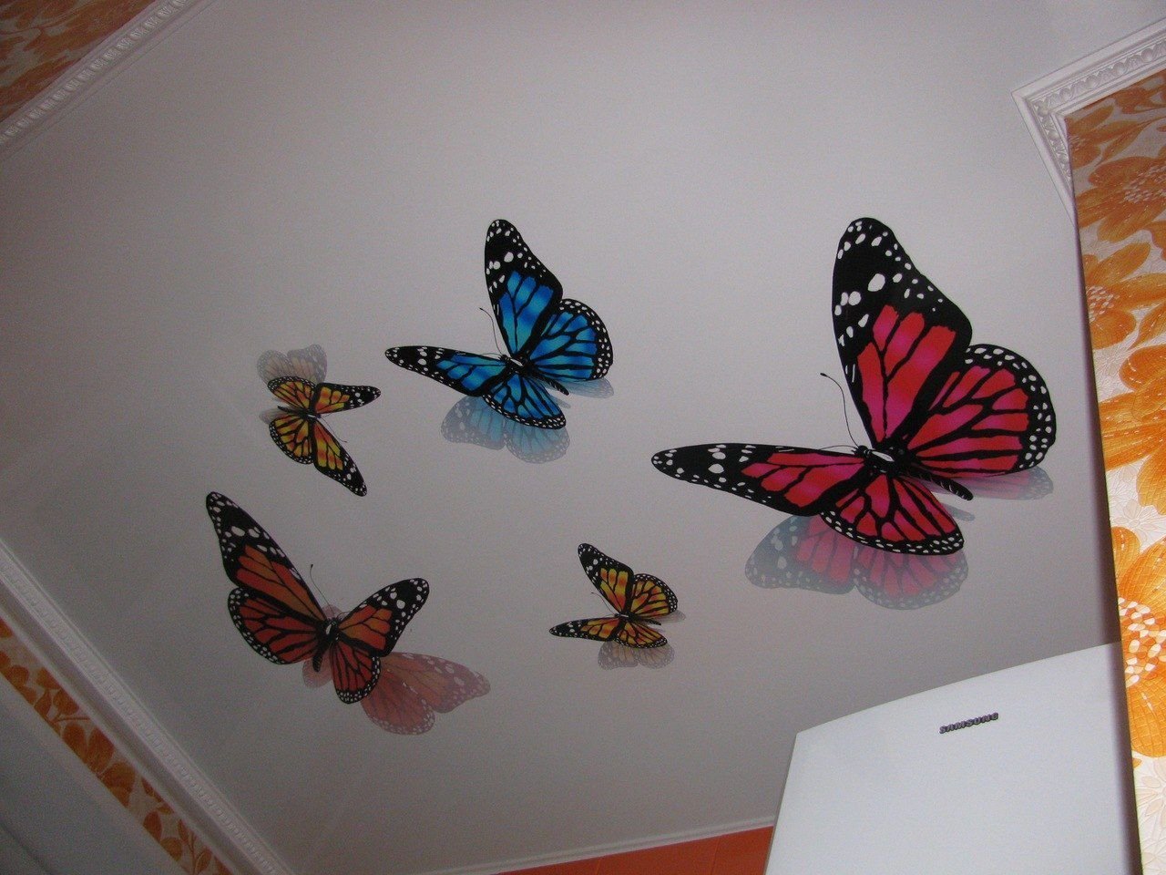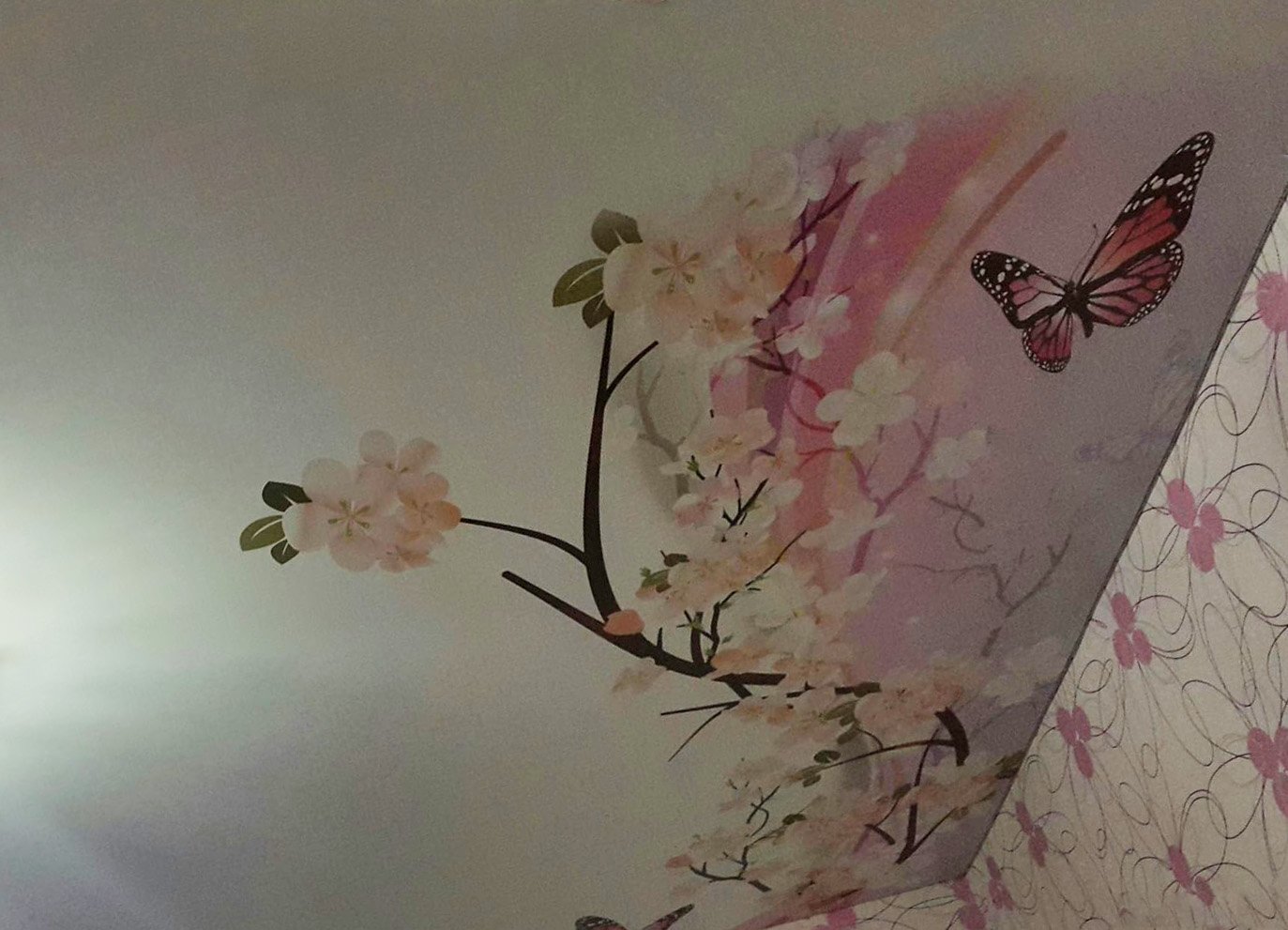 Примеры фотопечати на потолке бабочки цветы