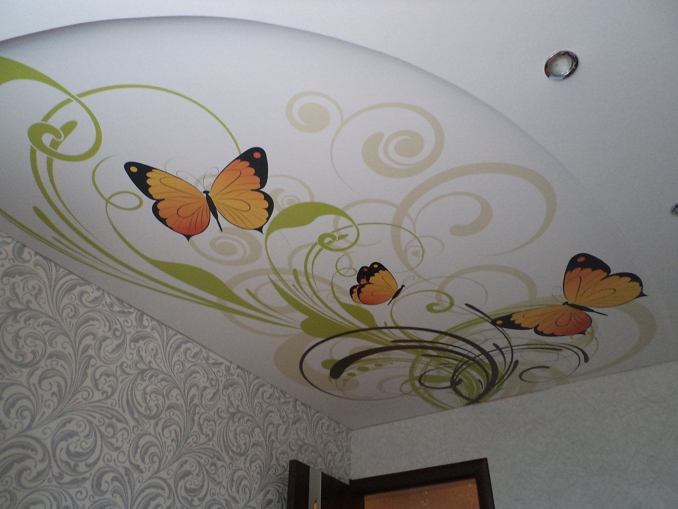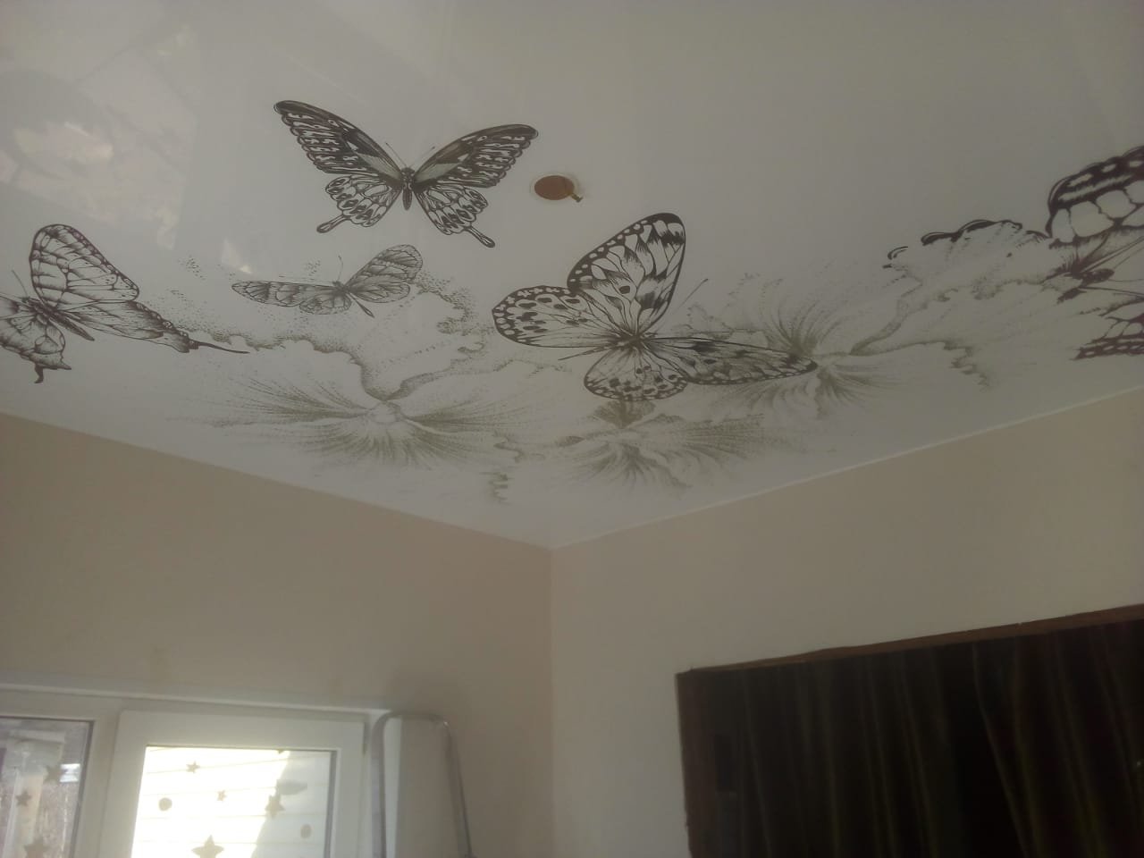 Матовый потолок с бабочками