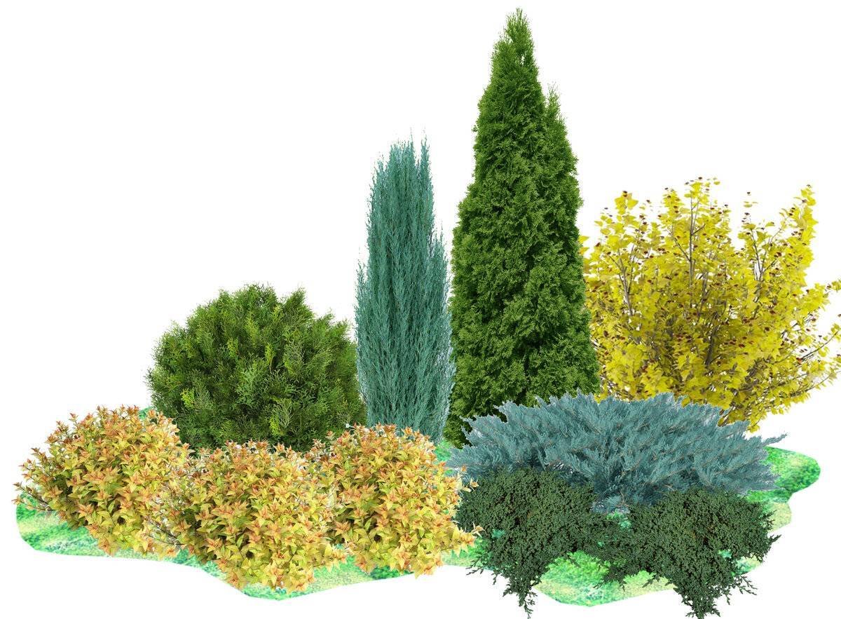 Туя Смарагд,можжевельник казацкий,Горная сосна-клумба