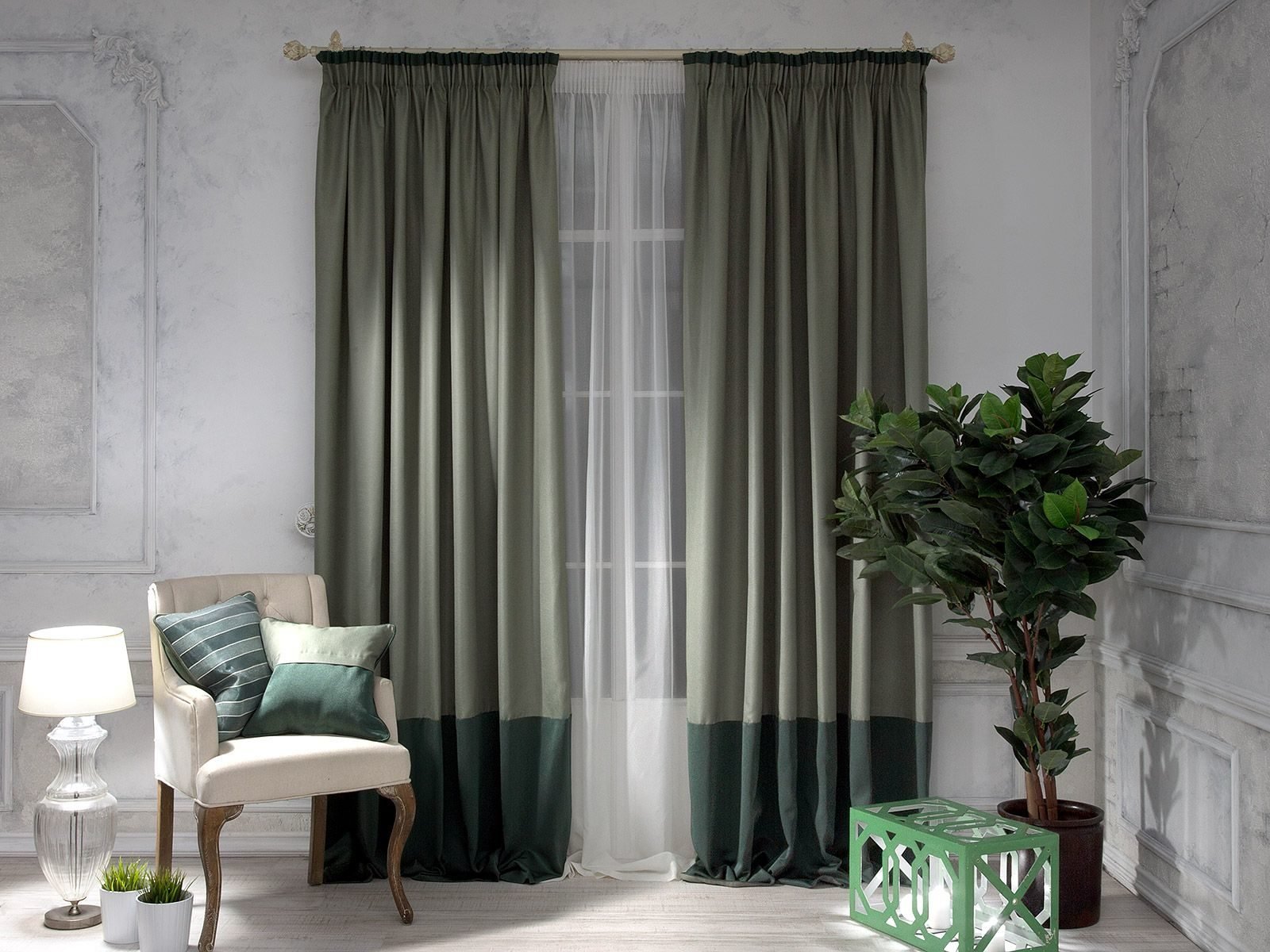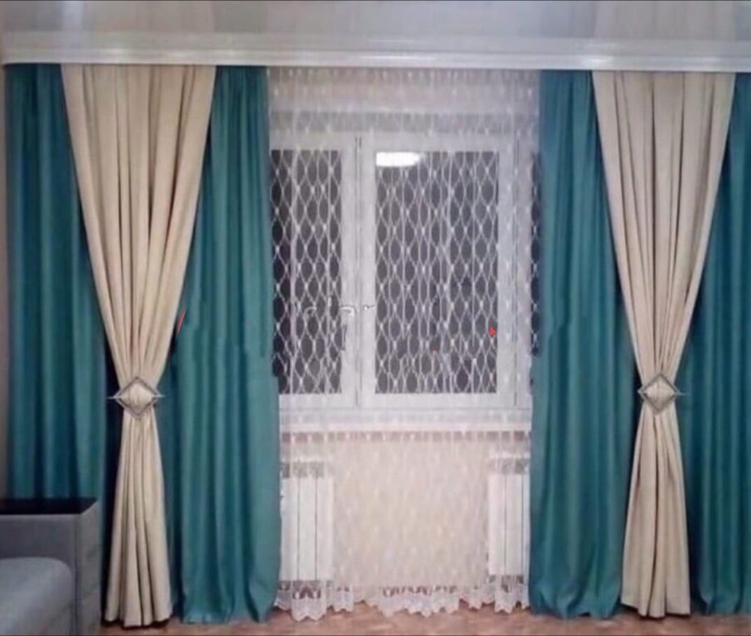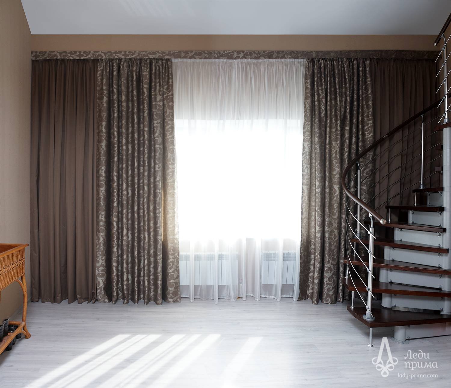 Шторы в гостиную в современном стиле двухцветные на большое окно