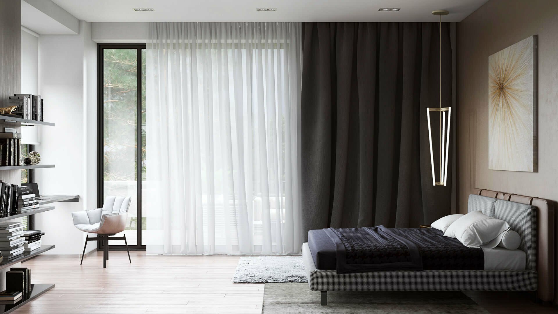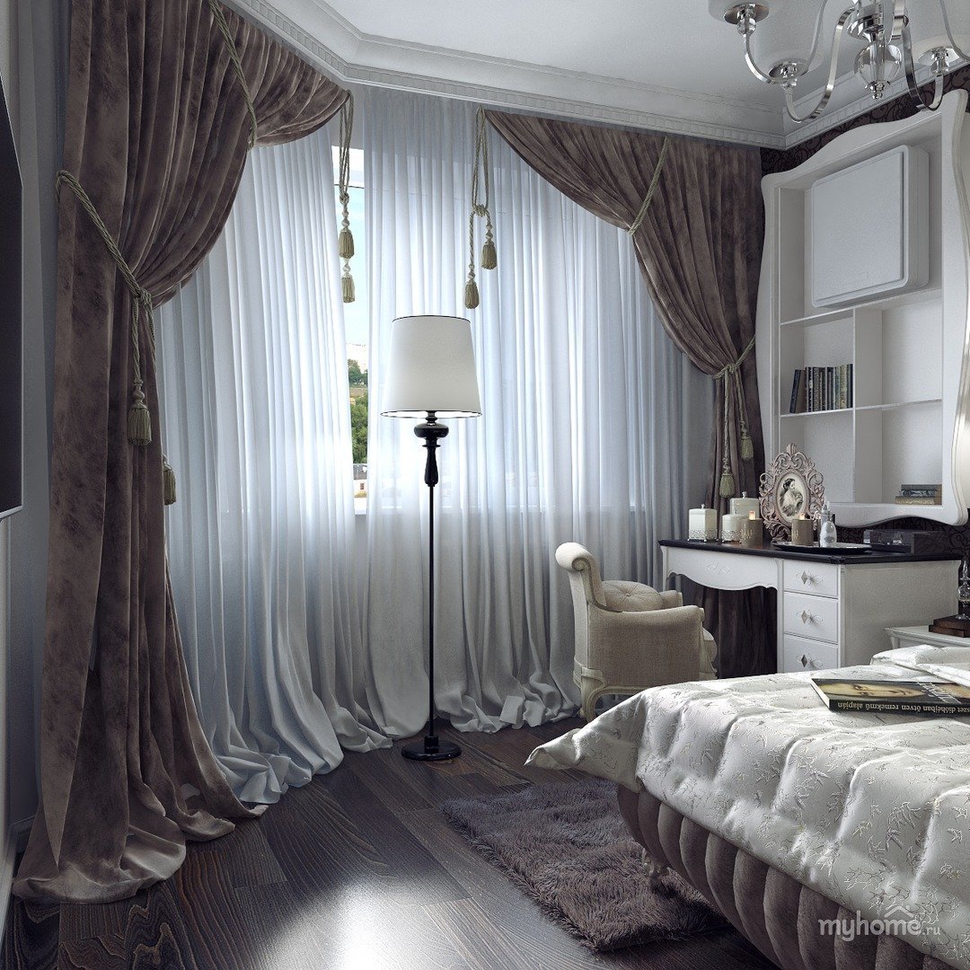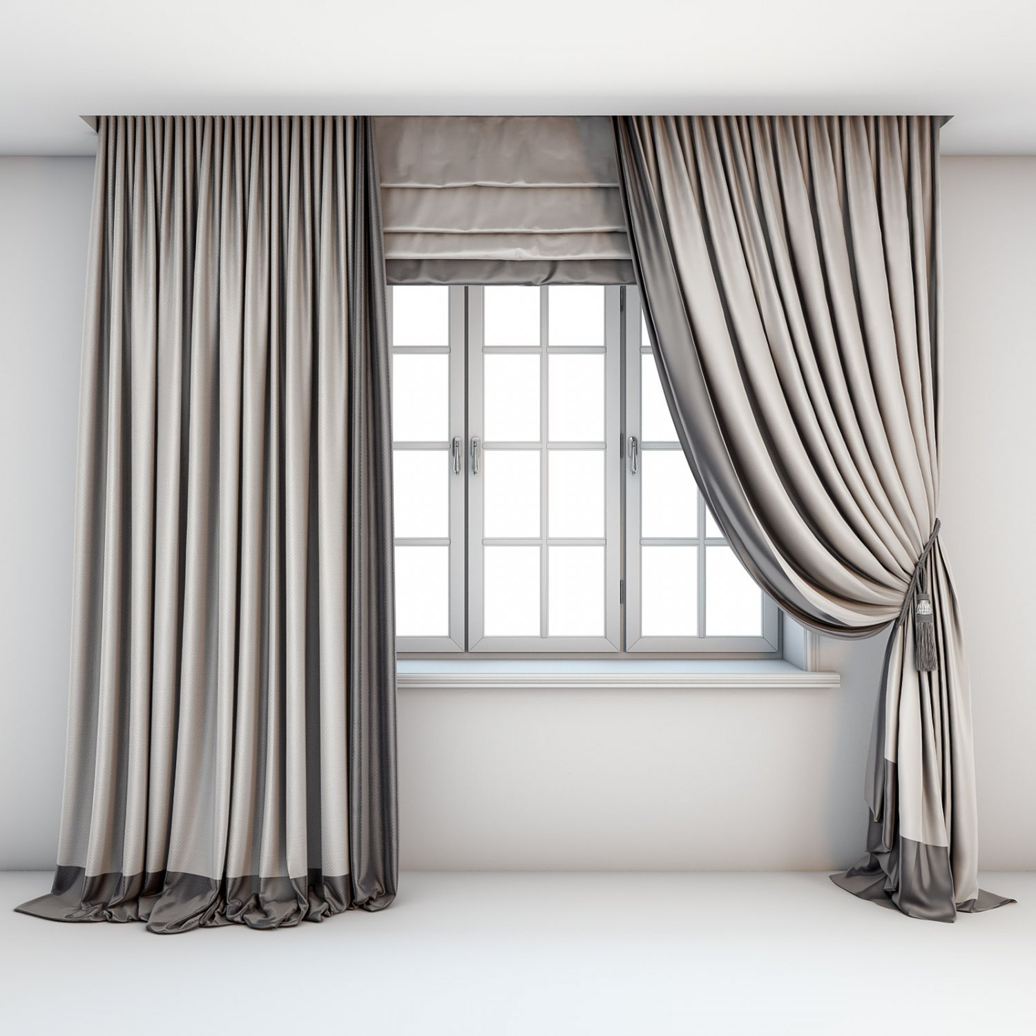 Шторы в гостиную в современном стиле двухцветные на большое окно