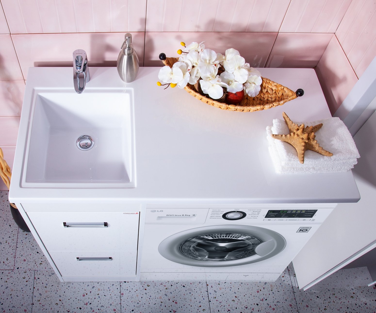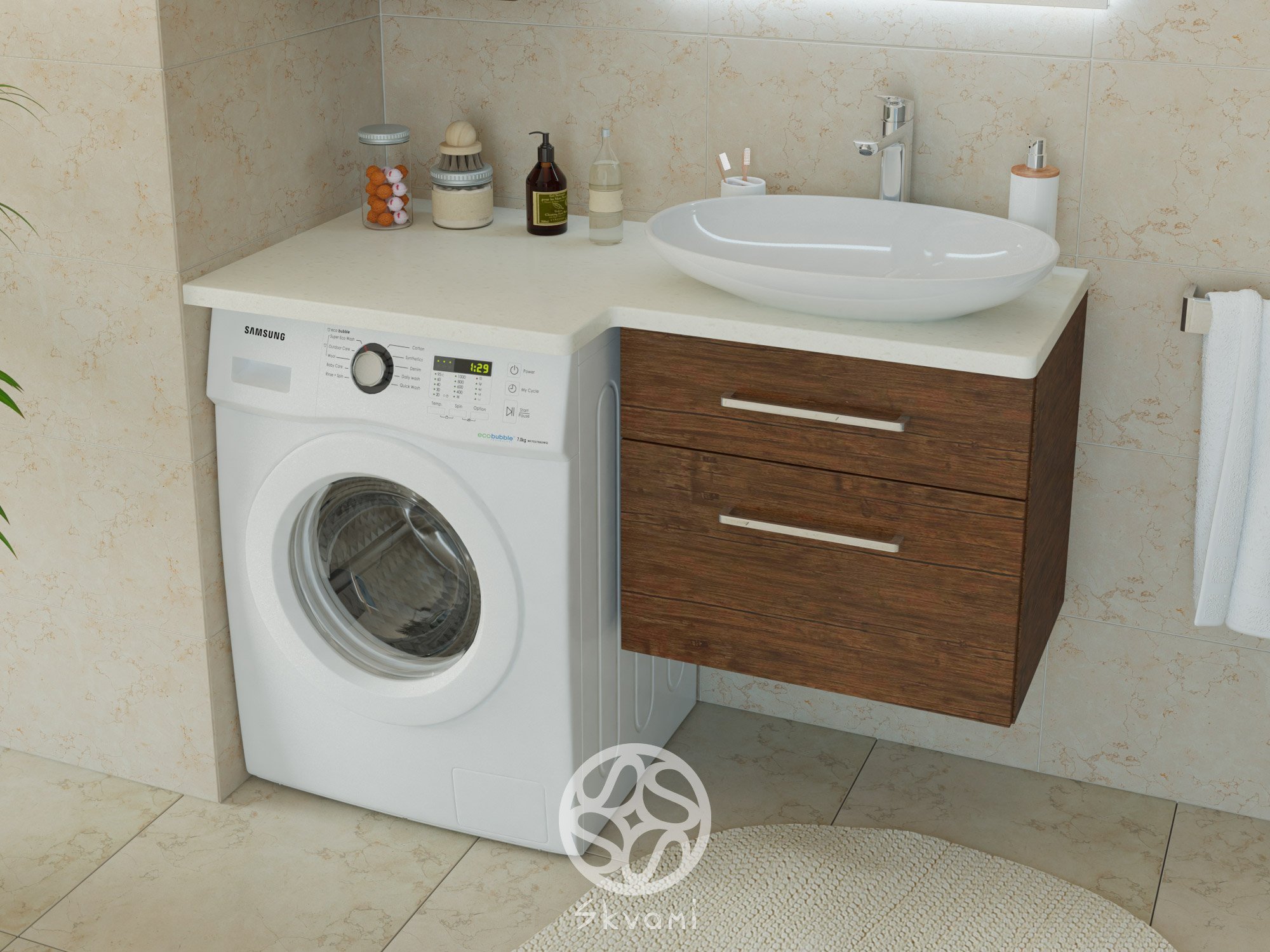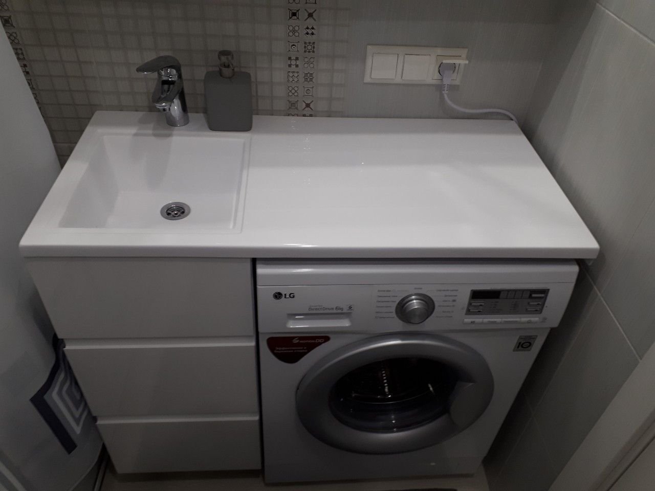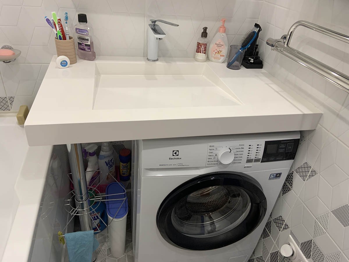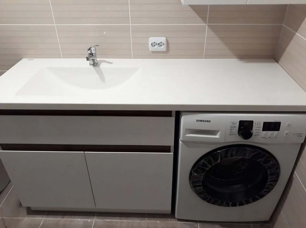 Раковина над стиральной машиной со столешницей