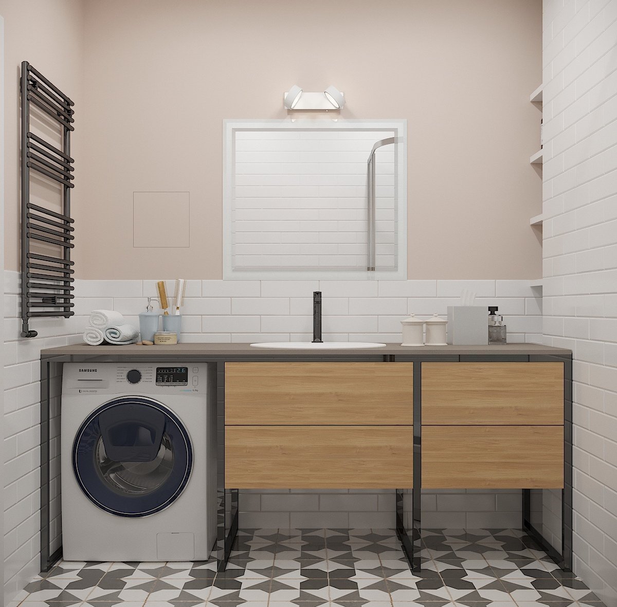 Стиральная машина под раковиной в стиле лофт