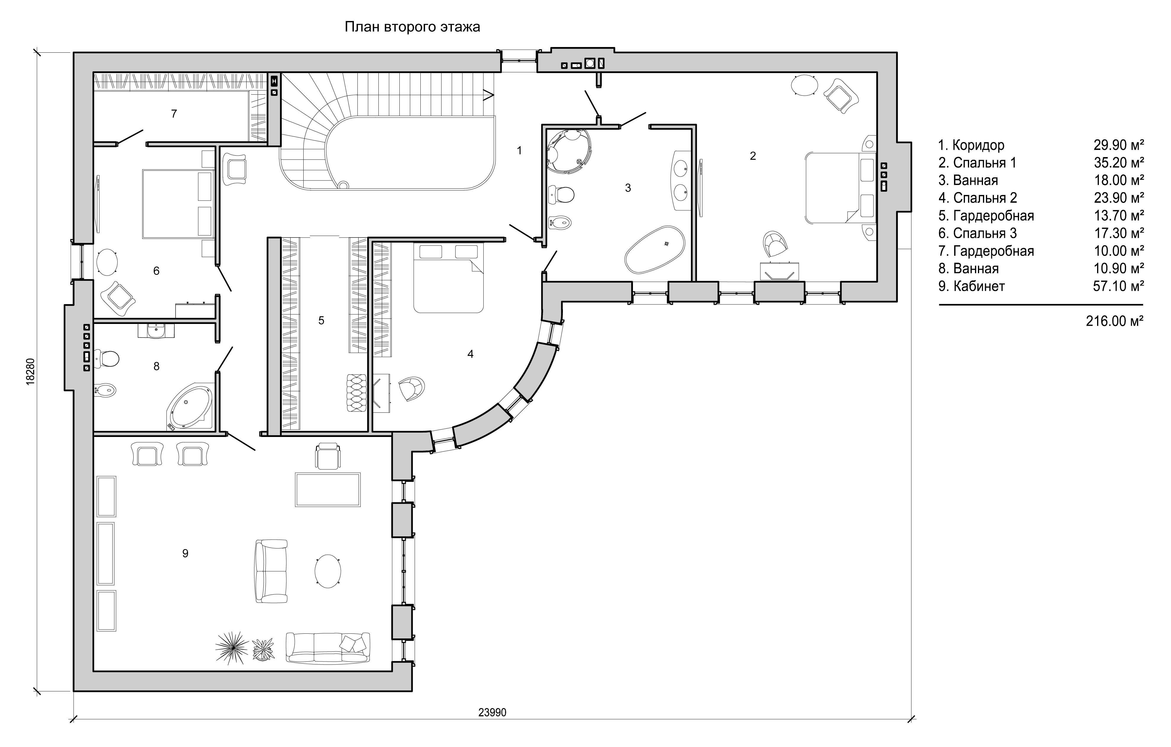 Спальня с кабинетом и гардеробной