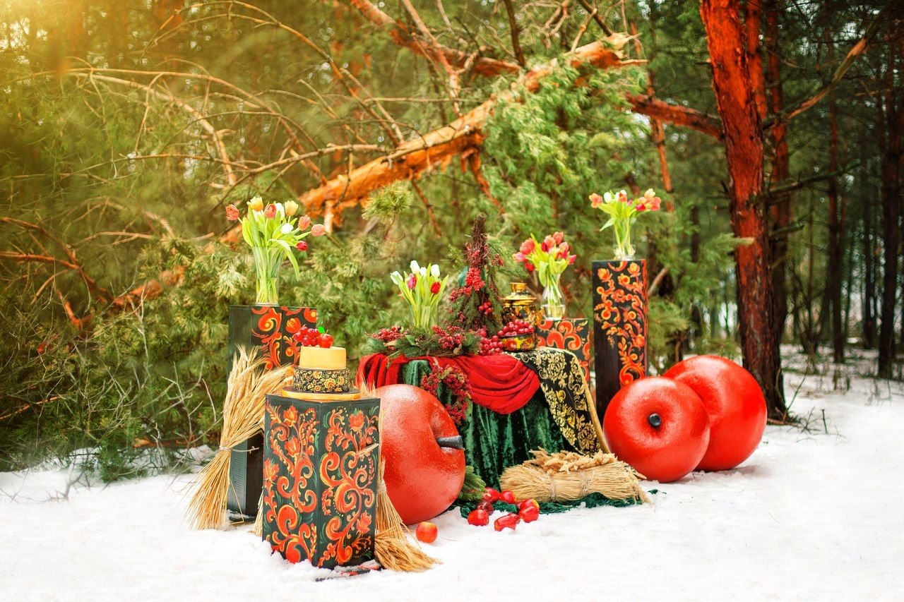 Фотозона в русском народном стиле зимой