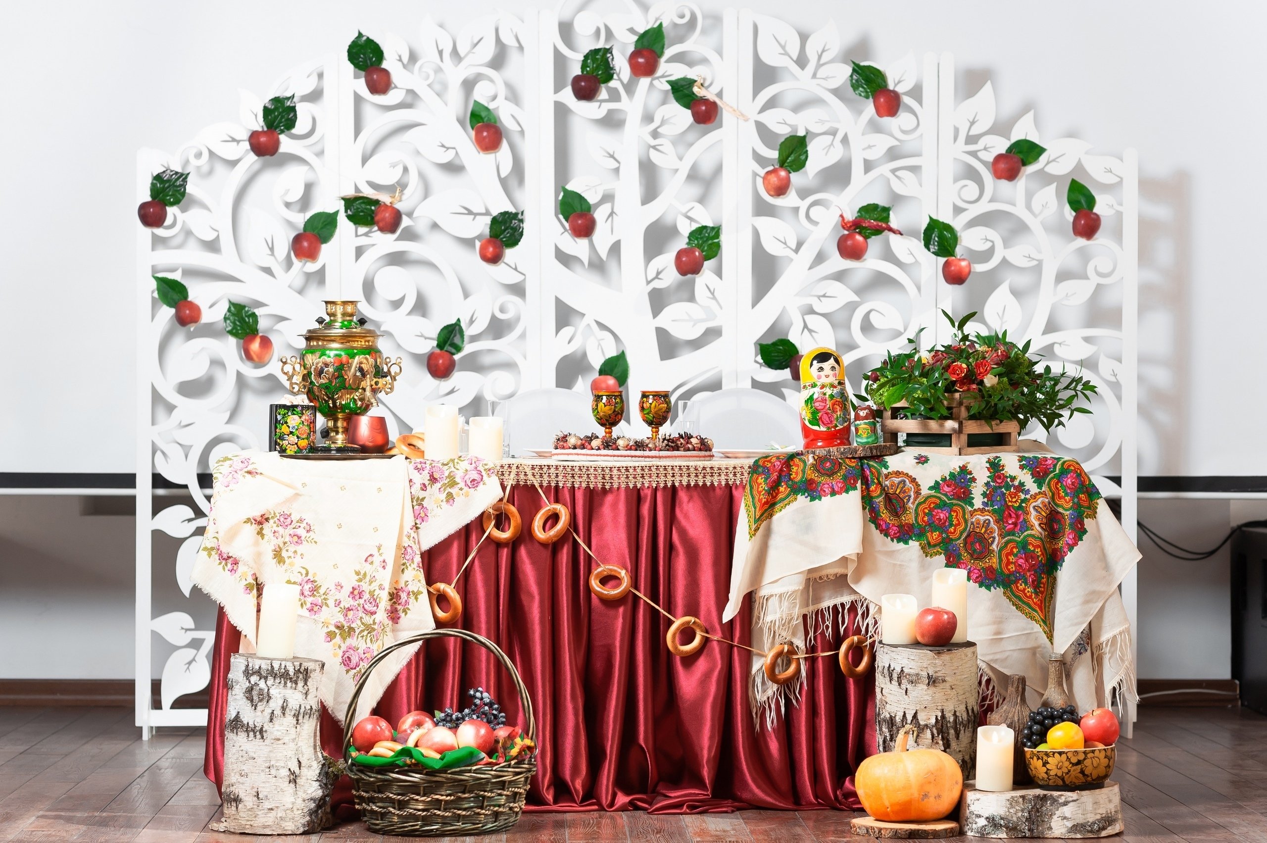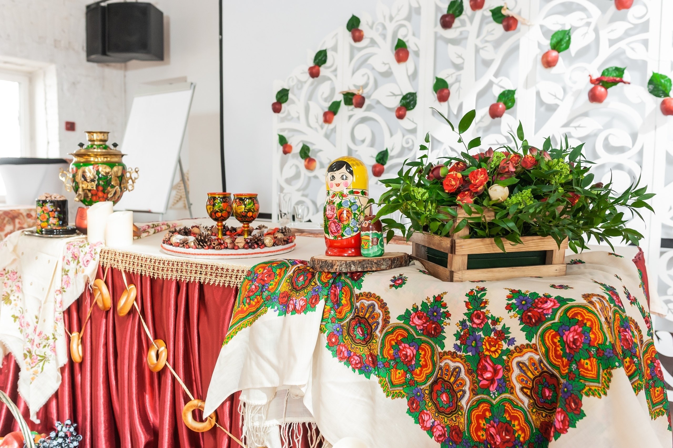 Украшение зала на свадьбу в русском стиле