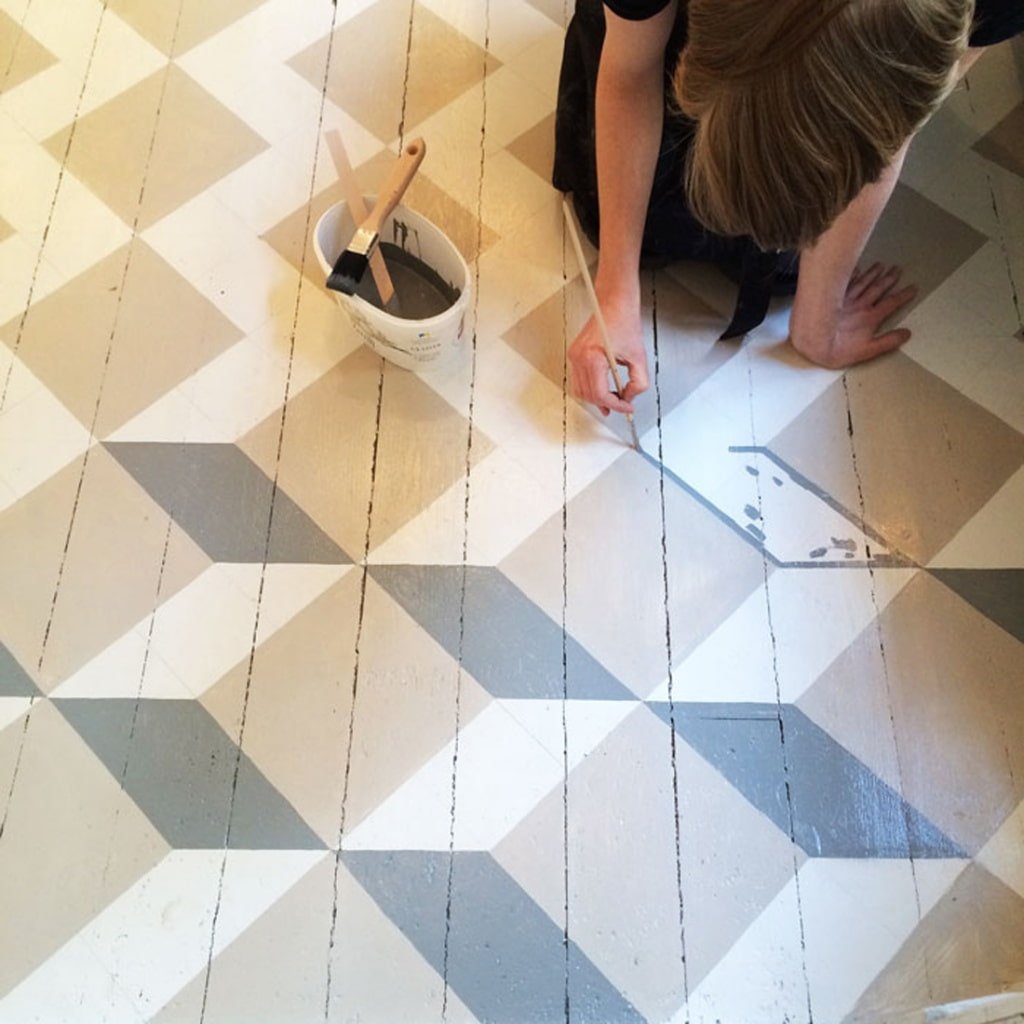 Крашенная плитка на полу