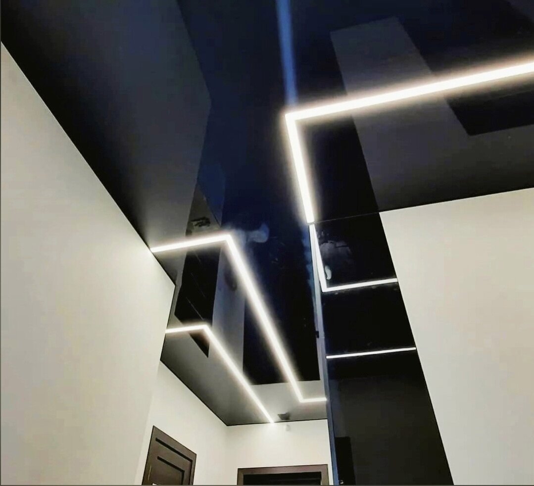 Чёрный глянцевый натяжной потолок в коридоре