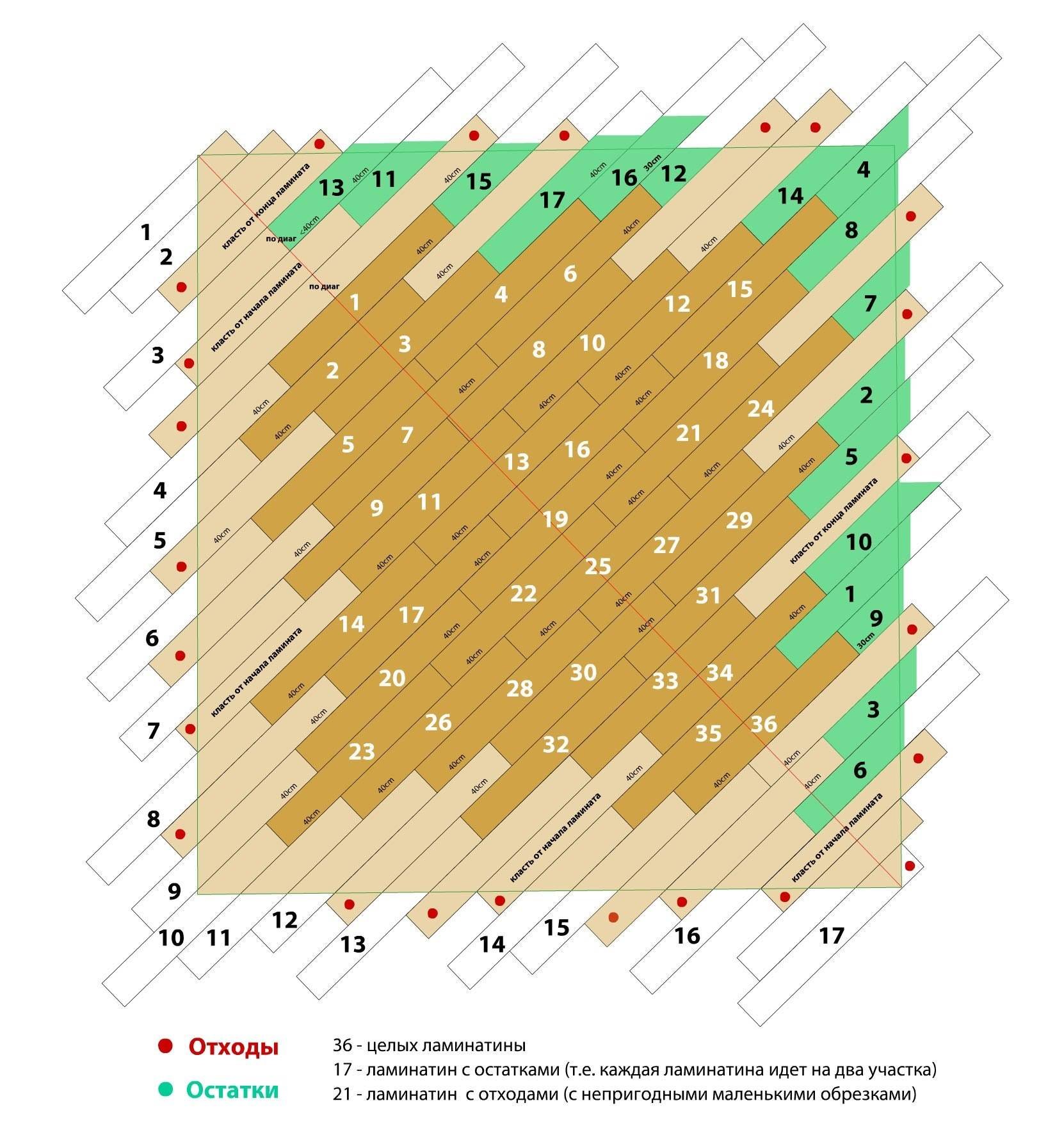 Схемы диагональной настилки пола